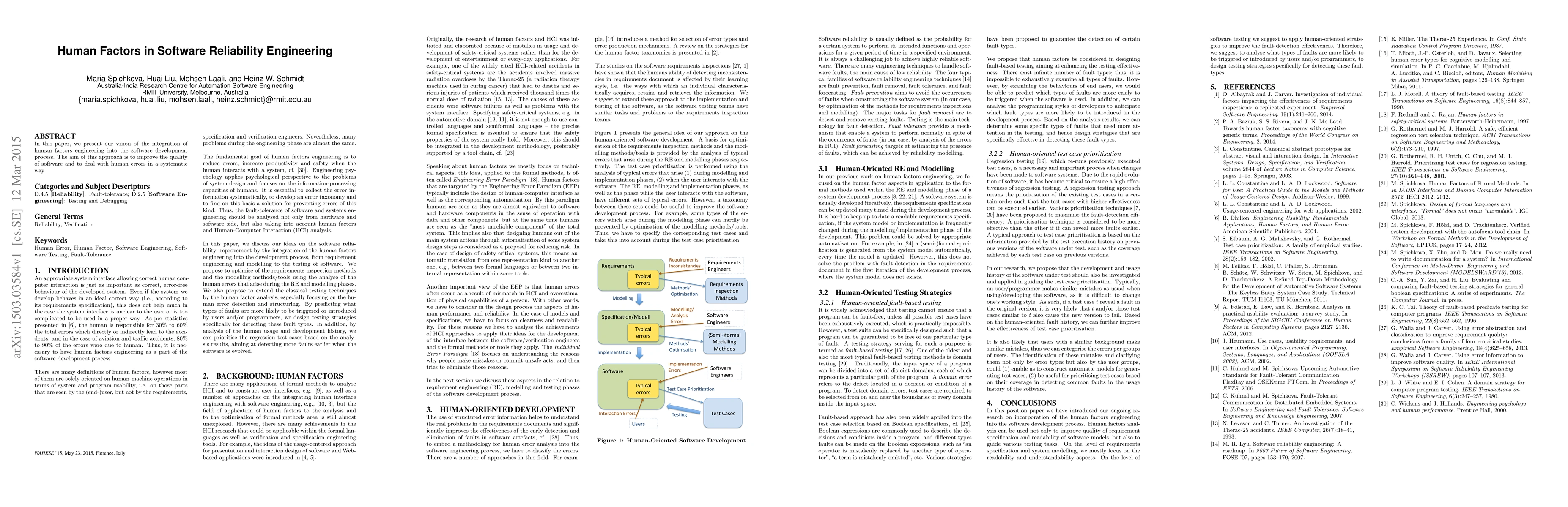 This paper proposes integrating human factors engineering into software development to enhance software quality and systematically address human errors. The approach aims to create a more reliable and user-friendly software product.