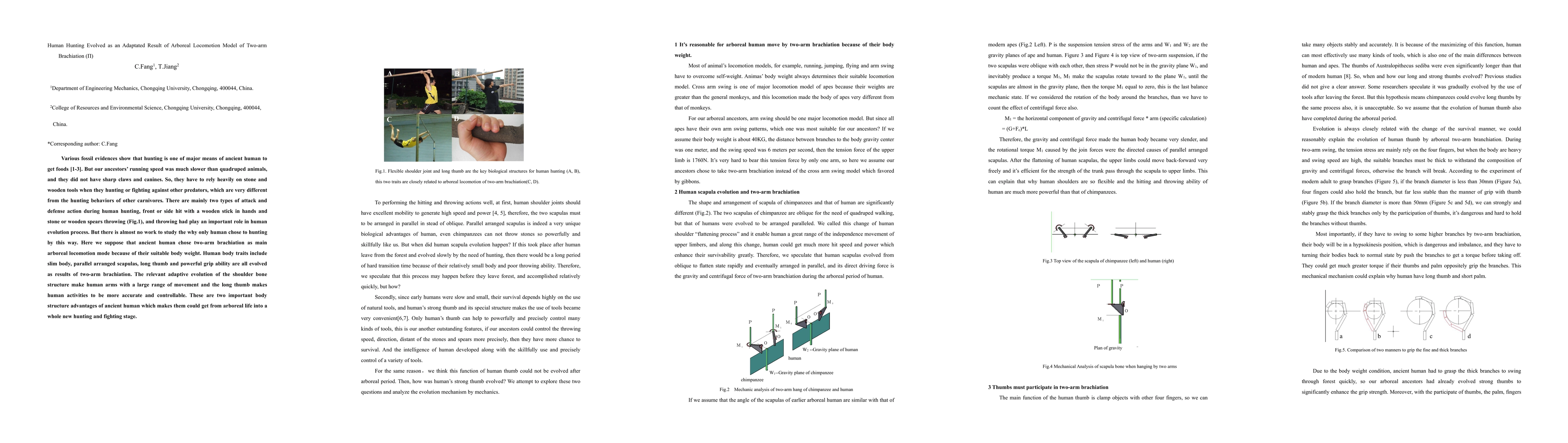 Human hunting evolved as a result of two-arm brachiation, a suitable body weight adaptation for arboreal locomotion, which led to the development of unique human physical traits that enabled a new stage in hunting and fighting.