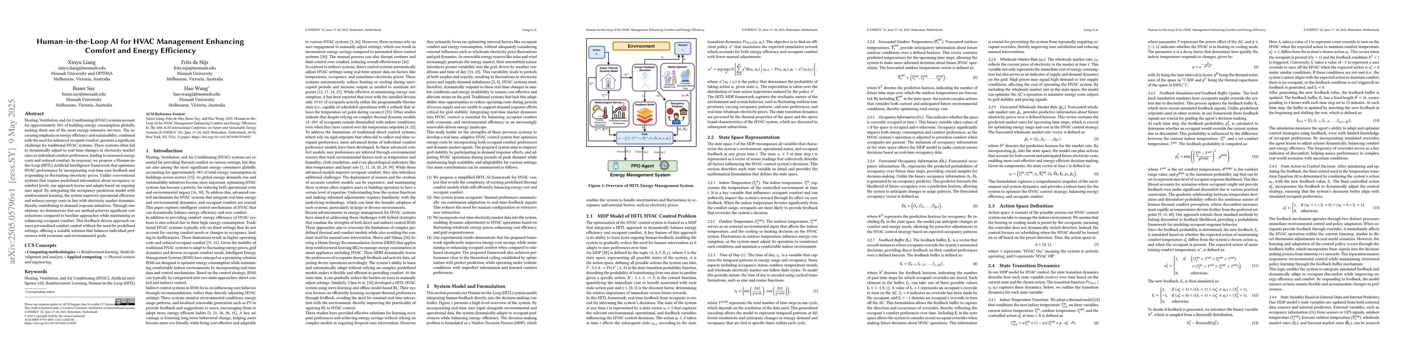 The research proposes a Human-in-the-Loop (HITL) AI framework for HVAC management that incorporates real-time user feedback and responds to electricity price fluctuations, using reinforcement learning to optimize performance and adapt to individual comfort preferences.