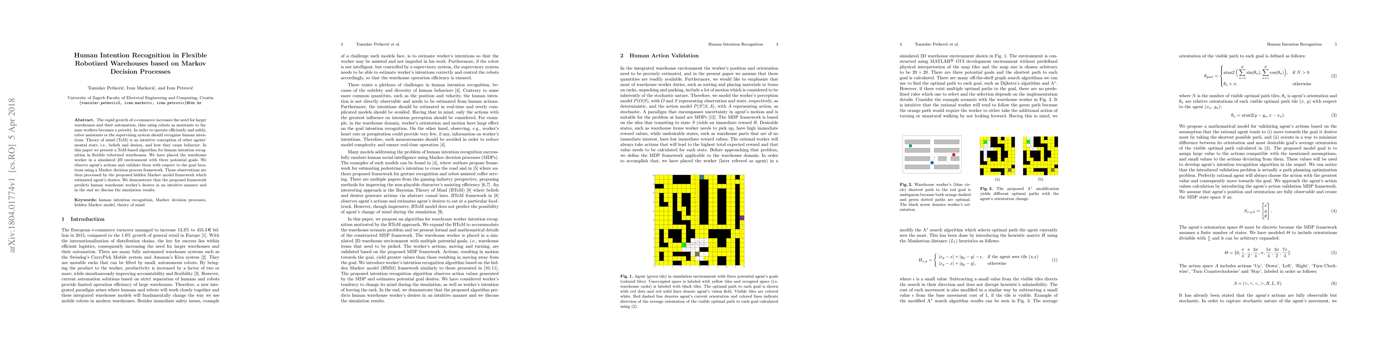 This paper proposes a Theory of Mind-based algorithm for recognizing human intentions in robotized warehouses using Markov decision processes and hidden Markov models. Simulation results show that the framework can intuitively predict warehouse workers' desires based on their actions and goal locations.