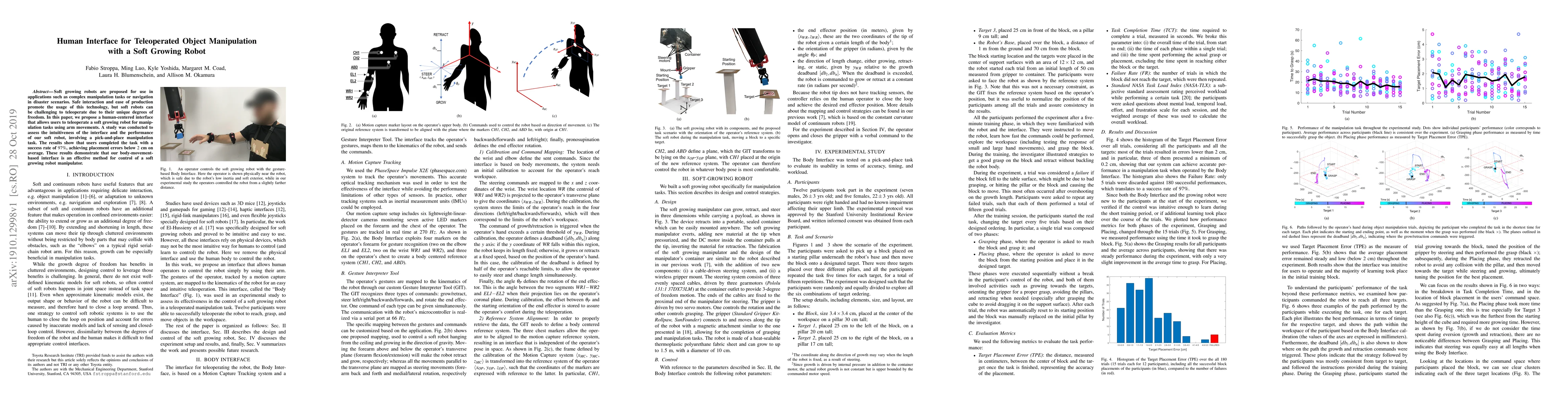 Soft growing robots are proposed for use in applications such as complex manipulation tasks or navigation in disaster scenarios. Safe interaction and ease of production promote the usage of this technology, but soft robots can be challenging to teleoperate due to their unique degrees of freedom. In this paper, we propose a human-centered interface that allows users to teleoperate a soft growing robot for manipulation tasks using arm movements. A study was conducted to assess the intuitiveness of the interface and the performance of our soft robot, involving a pick-and-place manipulation task. The results show that users completed the task with a success rate of 97%, achieving placement errors below 2 cm on average. These results demonstrate that our body-movement-based interface is an effective method for control of a soft growing robot manipulator.