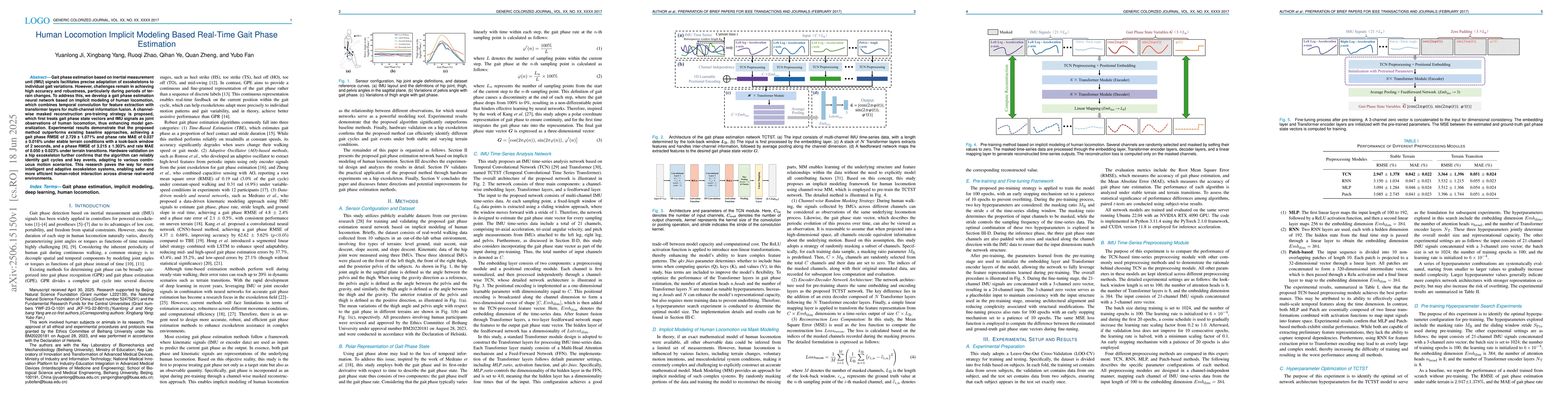 Gait phase estimation based on inertial measurement unit (IMU) signals facilitates precise adaptation of exoskeletons to individual gait variations. However, challenges remain in achieving high accuracy and robustness, particularly during periods of terrain changes. To address this, we develop a gait phase estimation neural network based on implicit modeling of human locomotion, which combines temporal convolution for feature extraction with transformer layers for multi-channel information fusion. A channel-wise masked reconstruction pre-training strategy is proposed, which first treats gait phase state vectors and IMU signals as joint observations of human locomotion, thus enhancing model generalization. Experimental results demonstrate that the proposed method outperforms existing baseline approaches, achieving a gait phase RMSE of $2.729 \pm 1.071%$ and phase rate MAE of $0.037 \pm 0.016%$ under stable terrain conditions with a look-back window of 2 seconds, and a phase RMSE of $3.215 \pm 1.303%$ and rate MAE of $0.050 \pm 0.023%$ under terrain transitions. Hardware validation on a hip exoskeleton further confirms that the algorithm can reliably identify gait cycles and key events, adapting to various continuous motion scenarios. This research paves the way for more intelligent and adaptive exoskeleton systems, enabling safer and more efficient human-robot interaction across diverse real-world environments.