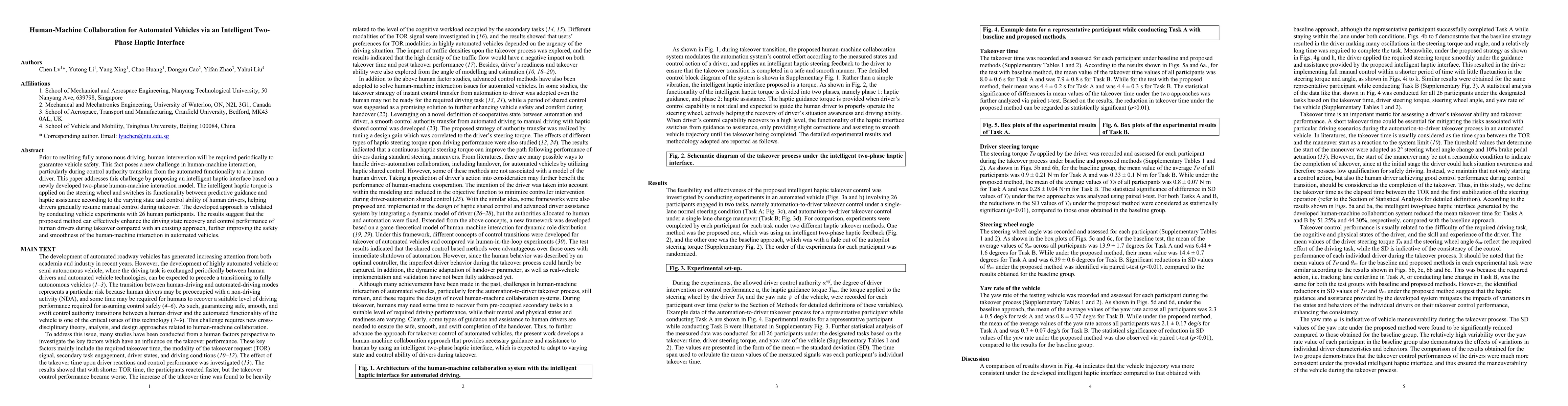 Prior to realizing fully autonomous driving, human intervention will be required periodically to guarantee vehicle safety. This fact poses a new challenge in human-machine interaction, particularly during control authority transition from the automated functionality to a human driver. This paper addresses this challenge by proposing an intelligent haptic interface based on a newly developed two-phase human-machine interaction model. The intelligent haptic torque is applied on the steering wheel and switches its functionality between predictive guidance and haptic assistance according to the varying state and control ability of human drivers, helping drivers gradually resume manual control during takeover. The developed approach is validated by conducting vehicle experiments with 26 human participants. The results suggest that the proposed method can effectively enhance the driving state recovery and control performance of human drivers during takeover compared with an existing approach, further improving the safety and smoothness of the human-machine interaction in automated vehicles.