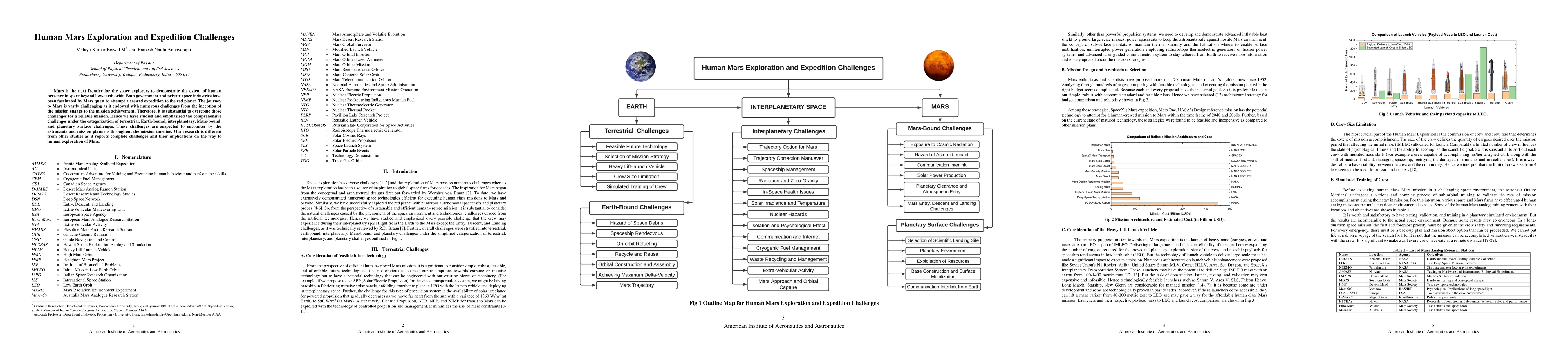 This research paper explores the comprehensive challenges faced in human Mars exploration, categorizing them into terrestrial, Earth-bound, interplanetary, Mars-bound, and planetary surface challenges. It emphasizes the necessity of overcoming these challenges for a successful crewed mission to Mars.