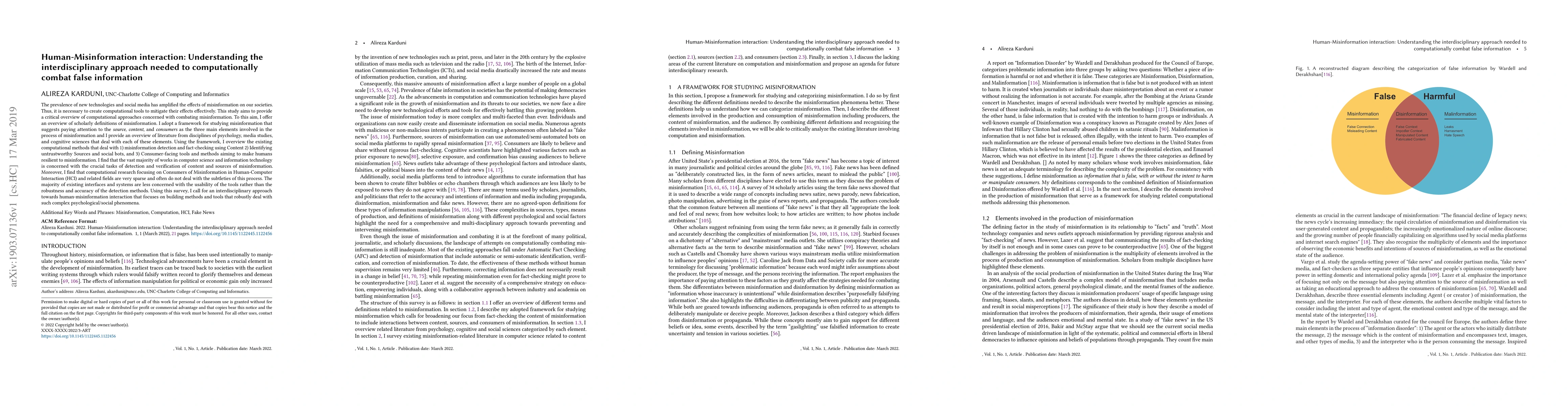 This paper reviews computational approaches to combat misinformation, emphasizing the need for an interdisciplinary framework involving psychology, media studies, and cognitive sciences. It highlights the scarcity of research focusing on consumer resilience and calls for more human-centered tools in Human-Computer Interaction to effectively address misinformation.