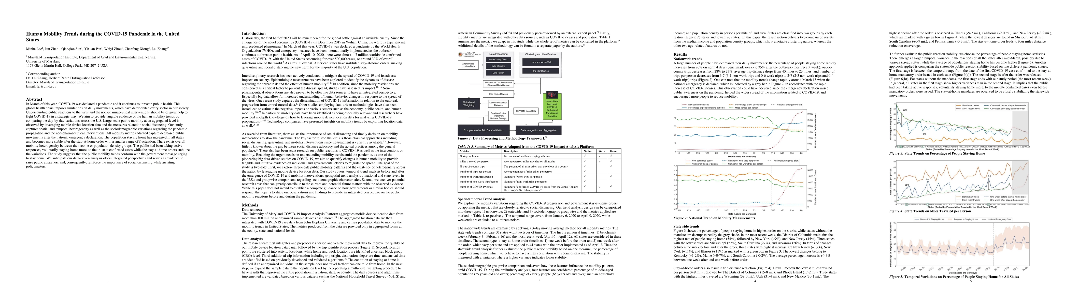 This study analyzes human mobility trends in the U.S. during the COVID-19 pandemic using mobile device location data, revealing significant decreases in public movement following emergency declarations and stay-at-home orders. The research highlights sociodemographic variations and the effectiveness of non-pharmaceutical interventions in reducing mobility.