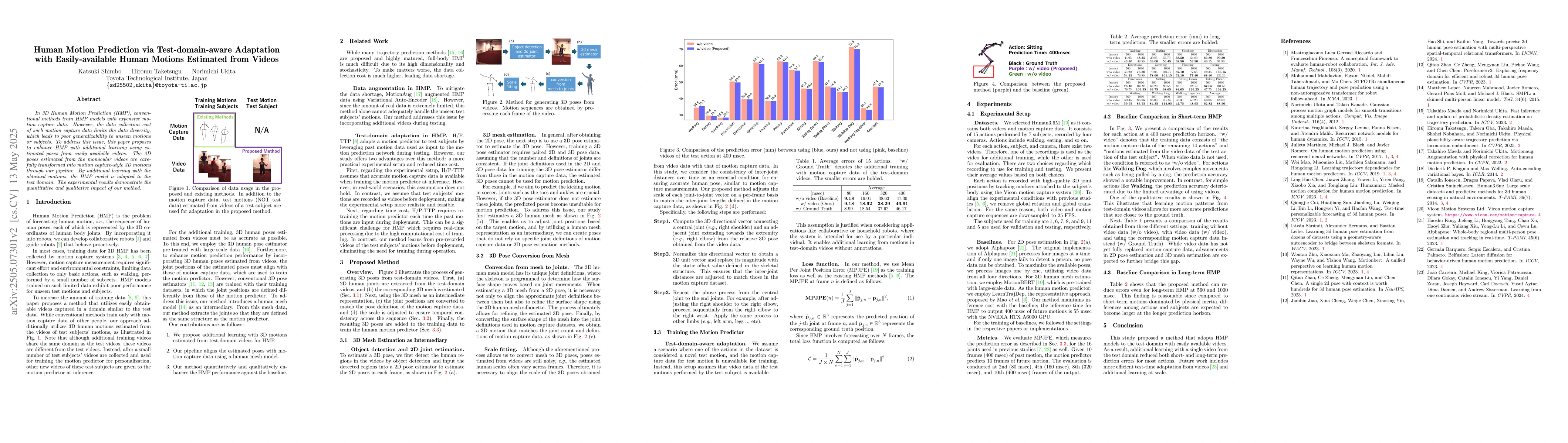 The research proposes enhancing 3D Human Motion Prediction (HMP) by using additional learning with 3D motions estimated from easily available monocular videos, transforming 2D poses into motion capture-style 3D motions for test-domain adaptation.