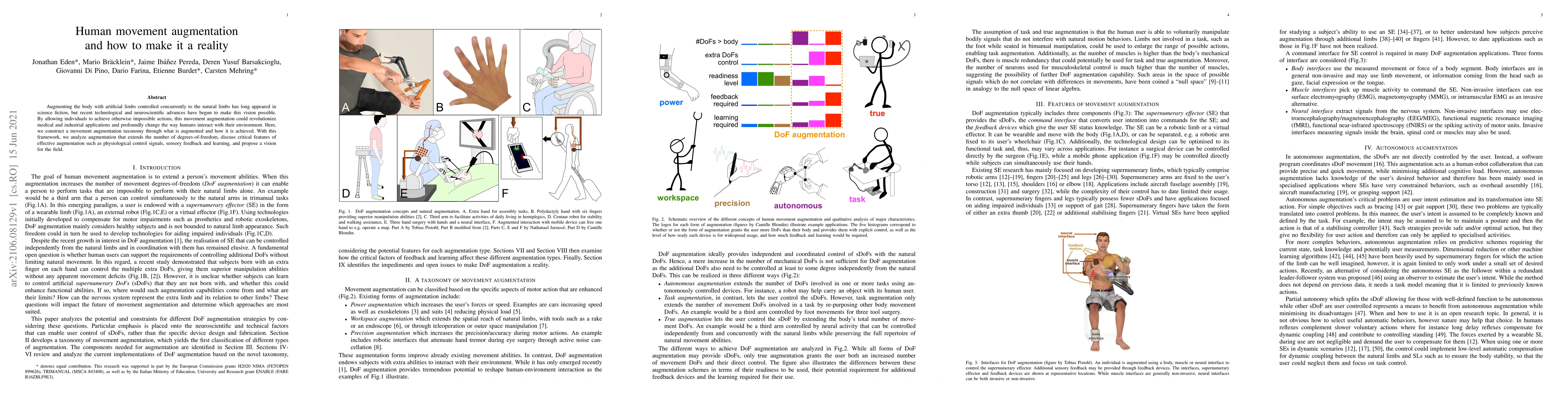 Researchers propose a framework for human movement augmentation that uses artificial limbs controlled by natural movements, revolutionizing medical and industrial applications. The study outlines key features of effective augmentation, including physiological control signals and sensory feedback.