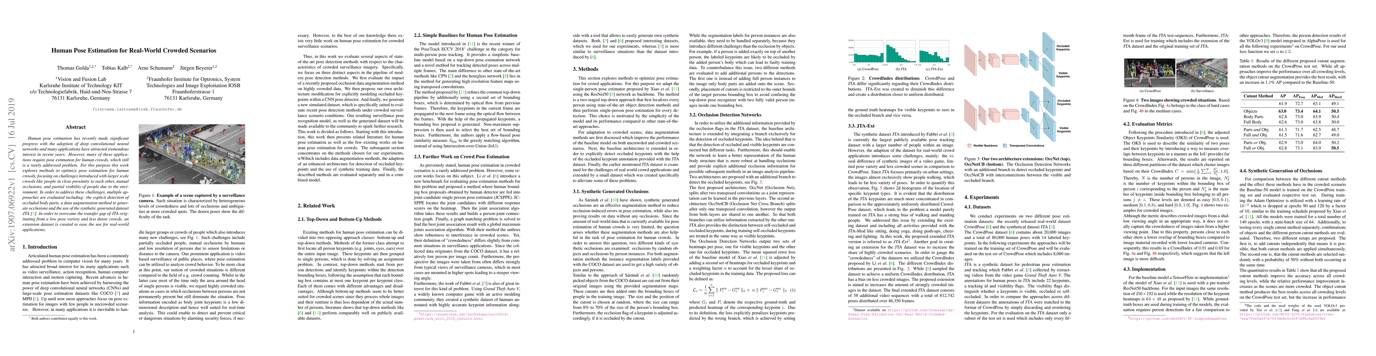 Human pose estimation has recently made significant progress with the adoption of deep convolutional neural networks. Its many applications have attracted tremendous interest in recent years. However, many practical applications require pose estimation for human crowds, which still is a rarely addressed problem. In this work, we explore methods to optimize pose estimation for human crowds, focusing on challenges introduced with dense crowds, such as occlusions, people in close proximity to each other, and partial visibility of people. In order to address these challenges, we evaluate three aspects of a pose detection approach: i) a data augmentation method to introduce robustness to occlusions, ii) the explicit detection of occluded body parts, and iii) the use of the synthetic generated datasets. The first approach to improve the accuracy in crowded scenarios is to generate occlusions at training time using person and object cutouts from the object recognition dataset COCO (Common Objects in Context). Furthermore, the synthetically generated dataset JTA (Joint Track Auto) is evaluated for the use in real-world crowd applications. In order to overcome the transfer gap of JTA originating from a low pose variety and less dense crowds, an extension dataset is created to ease the use for real-world applications. Additionally, the occlusion flags provided with JTA are utilized to train a model, which explicitly distinguishes between occluded and visible body parts in two distinct branches. The combination of the proposed additions to the baseline method help to improve the overall accuracy by 4.7% AP and thereby provide comparable results to current state-of-the-art approaches on the respective dataset.