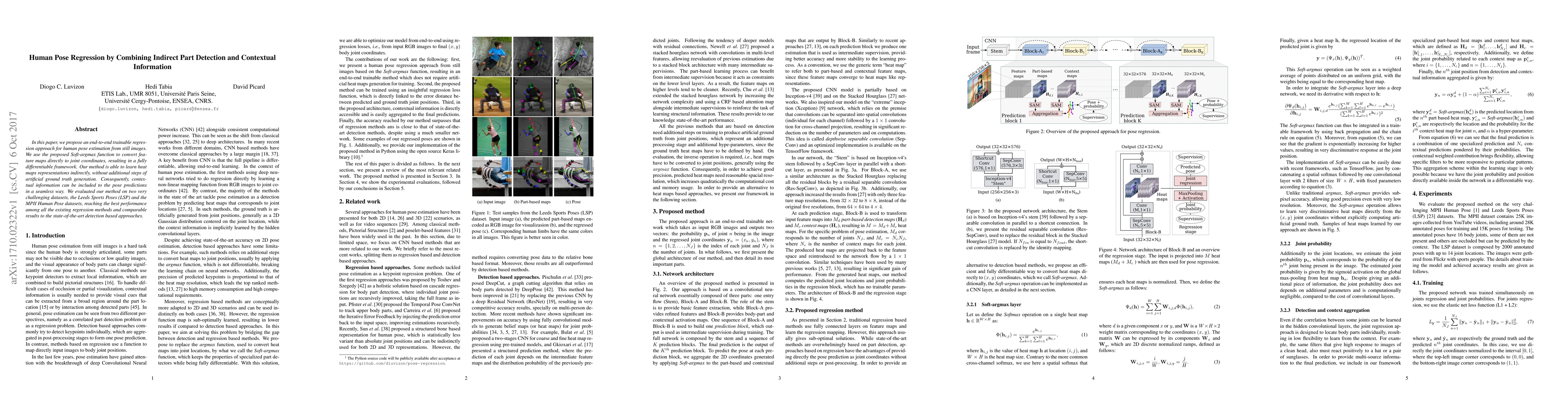In this paper, we propose an end-to-end trainable regression approach for human pose estimation from still images. We use the proposed Soft-argmax function to convert feature maps directly to joint coordinates, resulting in a fully differentiable framework. Our method is able to learn heat maps representations indirectly, without additional steps of artificial ground truth generation. Consequently, contextual information can be included to the pose predictions in a seamless way. We evaluated our method on two very challenging datasets, the Leeds Sports Poses (LSP) and the MPII Human Pose datasets, reaching the best performance among all the existing regression methods and comparable results to the state-of-the-art detection based approaches.