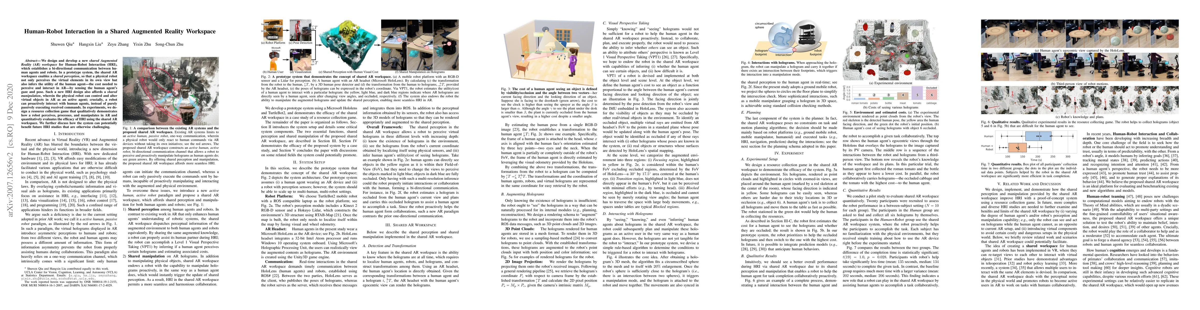 This paper develops a shared Augmented Reality workspace for Human-Robot Interaction, enabling bi-directional communication and shared perception, where robots can infer human agents' utility and proactively interact. Experiments using a resource collection game demonstrate the system's efficacy and potential benefits for future HRI studies.