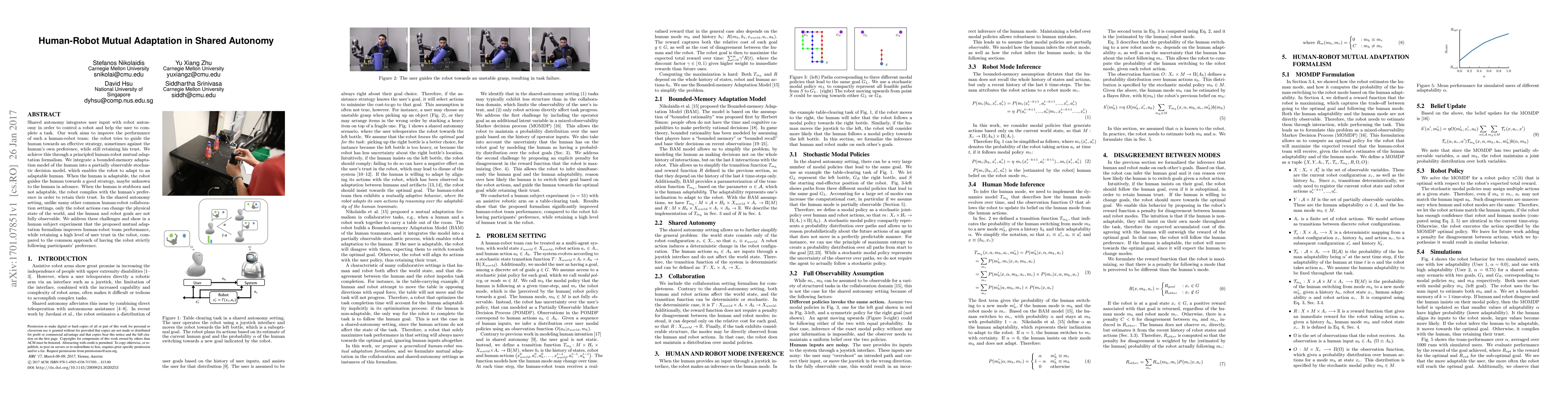 This research proposes a human-robot mutual adaptation model to enhance shared autonomy performance. The robot adapts its strategy to guide humans towards optimal task strategies when possible, while respecting human preferences to maintain trust, demonstrating improved team performance in a human subject experiment.