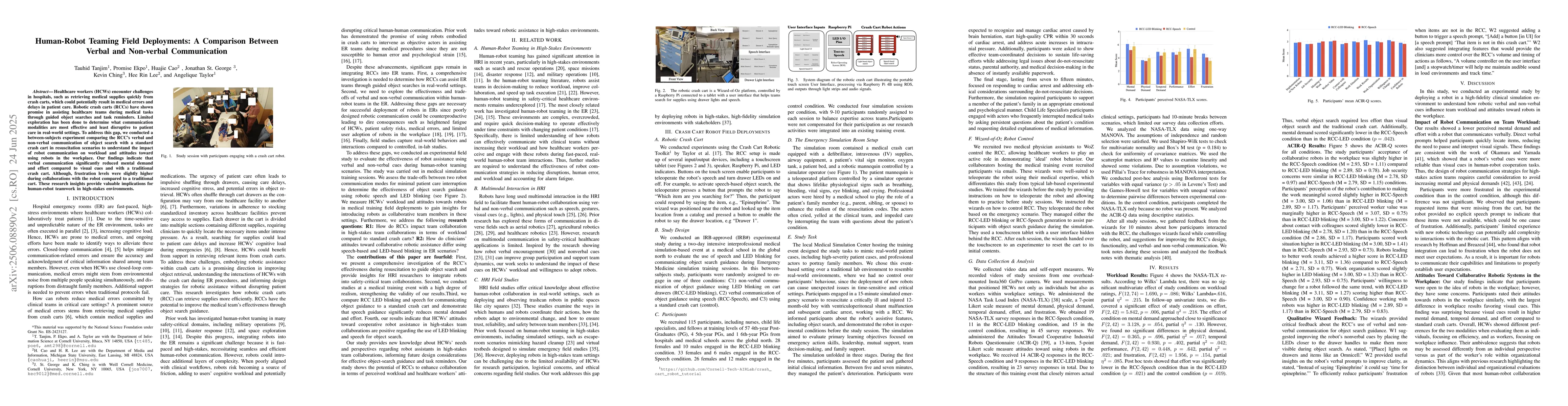 This work contributes to the understanding of human-robot teaming in high-stakes environments by comparing verbal and non-verbal communication modalities in real-world settings, providing valuable insights for designing effective robot communication strategies.