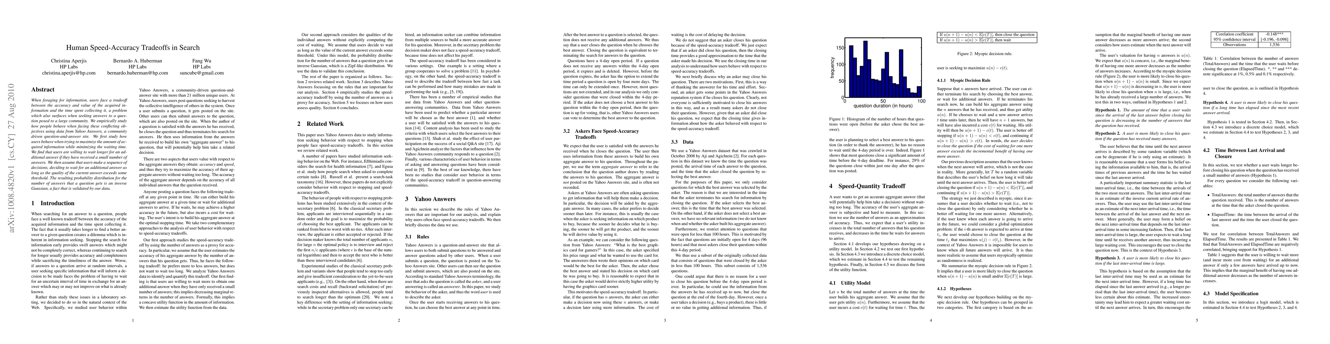 When foraging for information, users face a tradeoff between the accuracy and value of the acquired information and the time spent collecting it, a problem which also surfaces when seeking answers to a question posed to a large community. We empirically study how people behave when facing these conflicting objectives using data from Yahoo Answers, a community driven question-and-answer site. We first study how users behave when trying to maximize the amount of acquired information while minimizing the waiting time. We find that users are willing to wait longer for an additional answer if they have received a small number of answers. We then assume that users make a sequence of decisions, deciding to wait for an additional answer as long as the quality of the current answer exceeds some threshold. The resulting probability distribution for the number of answers that a question gets is an inverse Gaussian, a fact that is validated by our data.