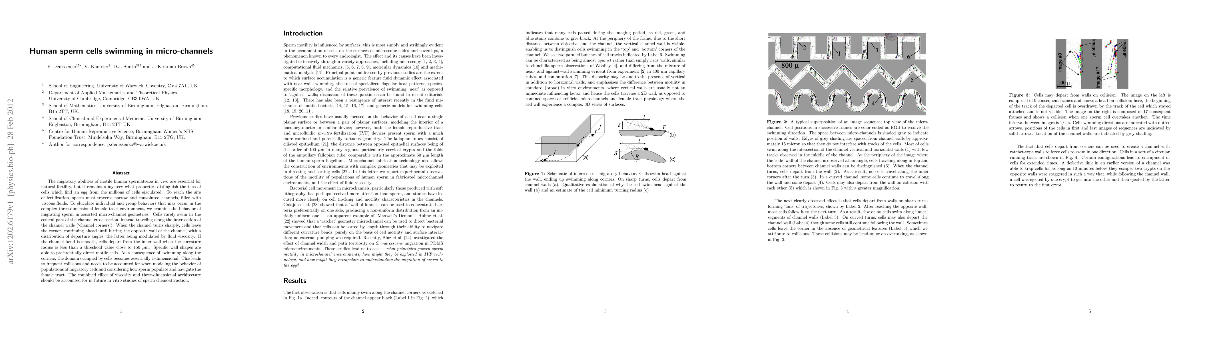 Human sperm cells swim in channels with high frequency of collisions due to 1D domain occupation, influenced by channel geometry and fluid viscosity. The study provides insights into the complex three-dimensional environment of the female tract and highlights the importance of considering these factors in modeling sperm behavior.