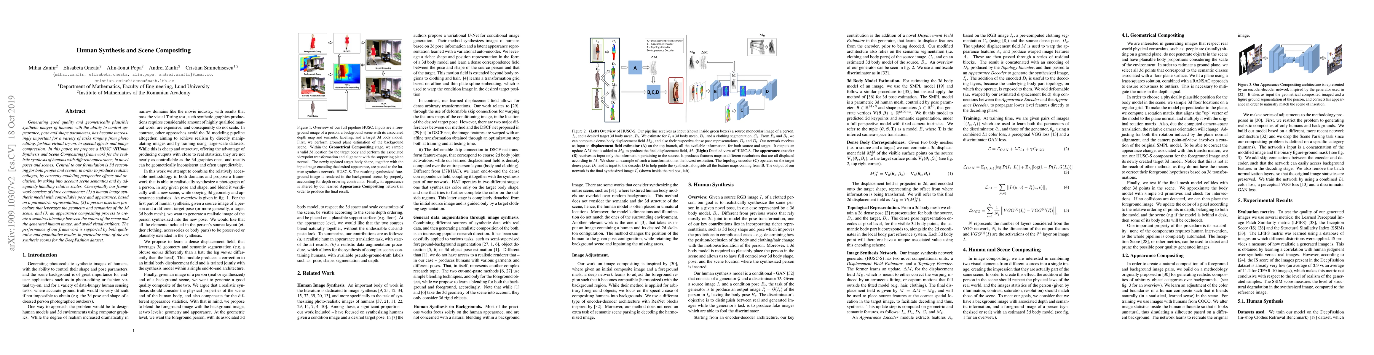 This paper introduces HUSC, a framework for synthesizing realistic human images with controllable appearance, pose, and shape, and compositing them into novel scenes. The framework uses 3D reasoning to handle perspective effects, occlusion, and scene semantics, ensuring geometrically plausible and visually seamless results.