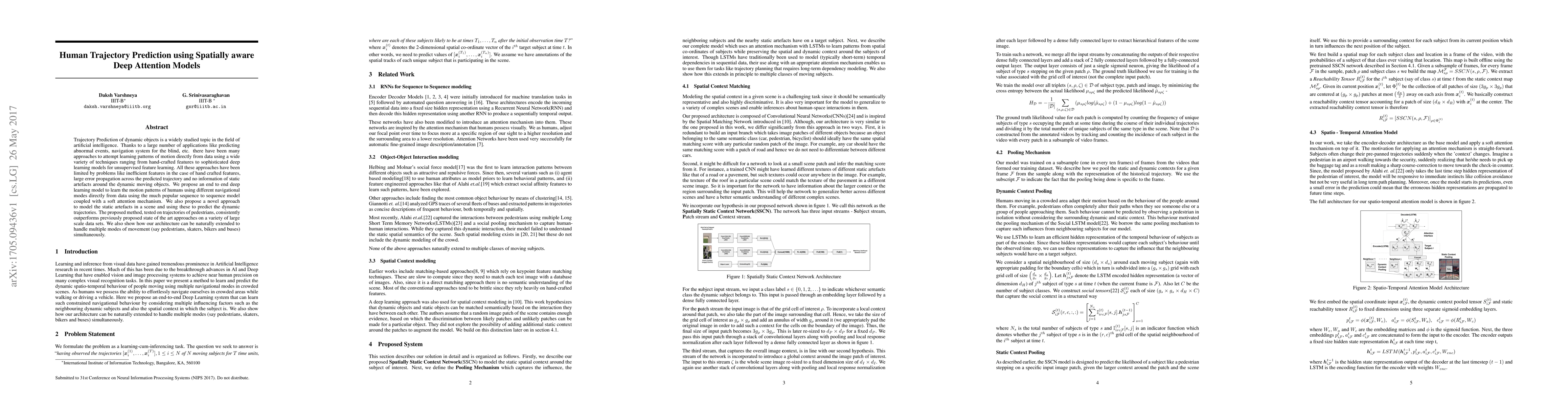 This paper proposes an advanced deep learning model for human trajectory prediction that integrates a sequence-to-sequence framework with a soft attention mechanism and spatial awareness to account for static scene elements, outperforming previous methods on large datasets. The model can also be extended to handle multiple types of dynamic objects simultaneously.