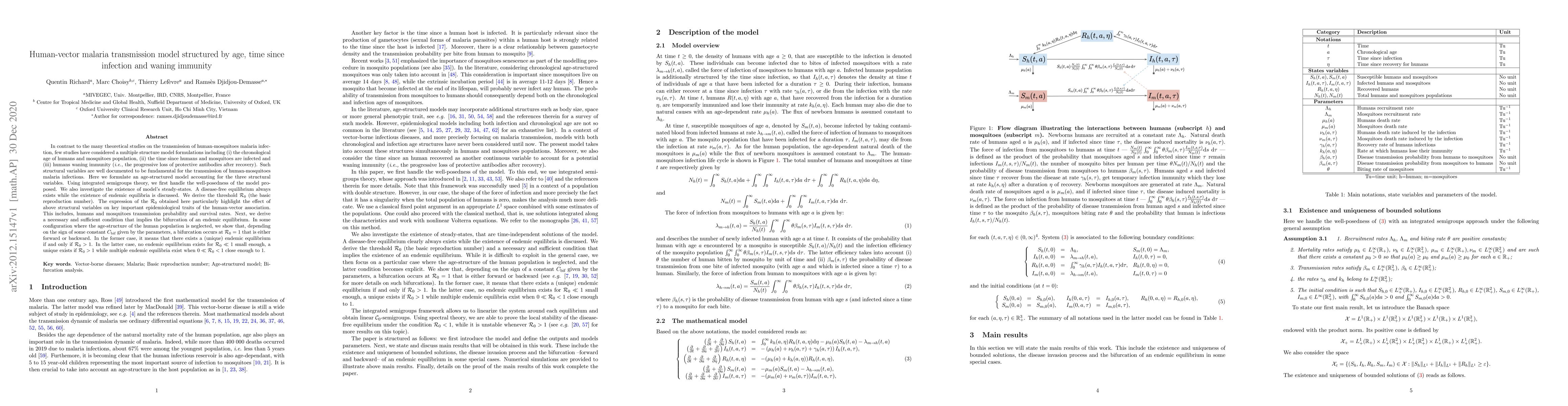This research paper develops an age-structured model for human-vector malaria transmission, incorporating chronological age, time since infection, and waning immunity, to better understand the dynamics of disease spread.