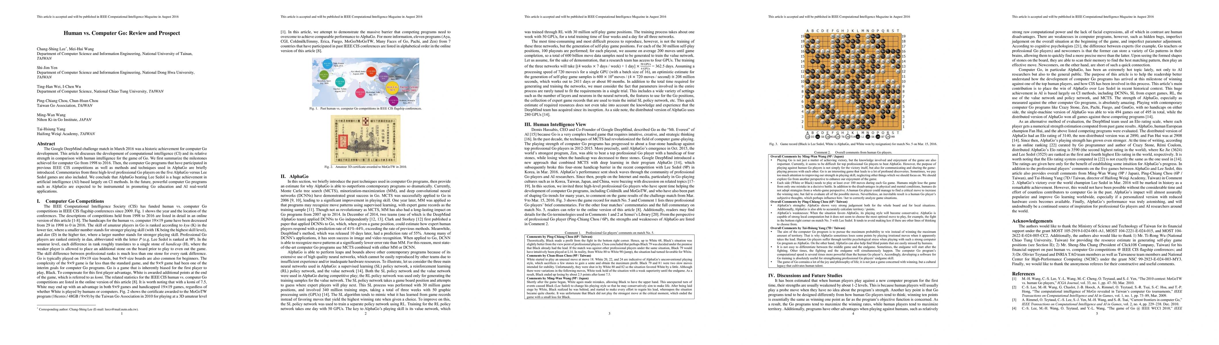 The Google DeepMind challenge match in March 2016 was a historic achievement for computer Go development. This article discusses the development of computational intelligence (CI) and its relative strength in comparison with human intelligence for the game of Go. We first summarize the milestones achieved for computer Go from 1998 to 2016. Then, the computer Go programs that have participated in previous IEEE CIS competitions as well as methods and techniques used in AlphaGo are briefly introduced. Commentaries from three high-level professional Go players on the five AlphaGo versus Lee Sedol games are also included. We conclude that AlphaGo beating Lee Sedol is a huge achievement in artificial intelligence (AI) based largely on CI methods. In the future, powerful computer Go programs such as AlphaGo are expected to be instrumental in promoting Go education and AI real-world applications.