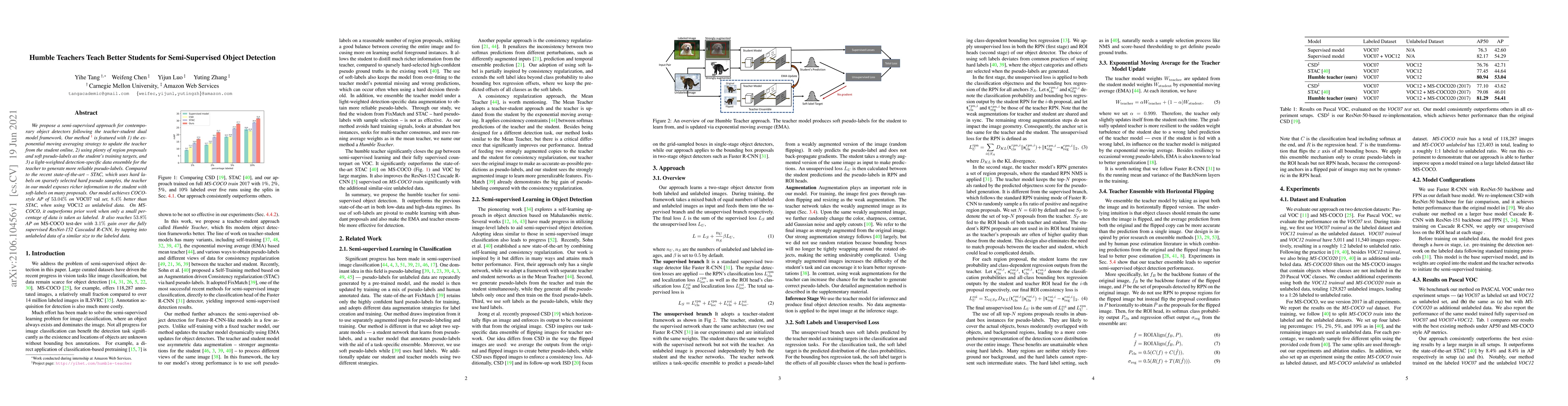 We propose a semi-supervised approach for contemporary object detectors following the teacher-student dual model framework. Our method is featured with 1) the exponential moving averaging strategy to update the teacher from the student online, 2) using plenty of region proposals and soft pseudo-labels as the student's training targets, and 3) a light-weighted detection-specific data ensemble for the teacher to generate more reliable pseudo-labels. Compared to the recent state-of-the-art -- STAC, which uses hard labels on sparsely selected hard pseudo samples, the teacher in our model exposes richer information to the student with soft-labels on many proposals. Our model achieves COCO-style AP of 53.04% on VOC07 val set, 8.4% better than STAC, when using VOC12 as unlabeled data. On MS-COCO, it outperforms prior work when only a small percentage of data is taken as labeled. It also reaches 53.8% AP on MS-COCO test-dev with 3.1% gain over the fully supervised ResNet-152 Cascaded R-CNN, by tapping into unlabeled data of a similar size to the labeled data.