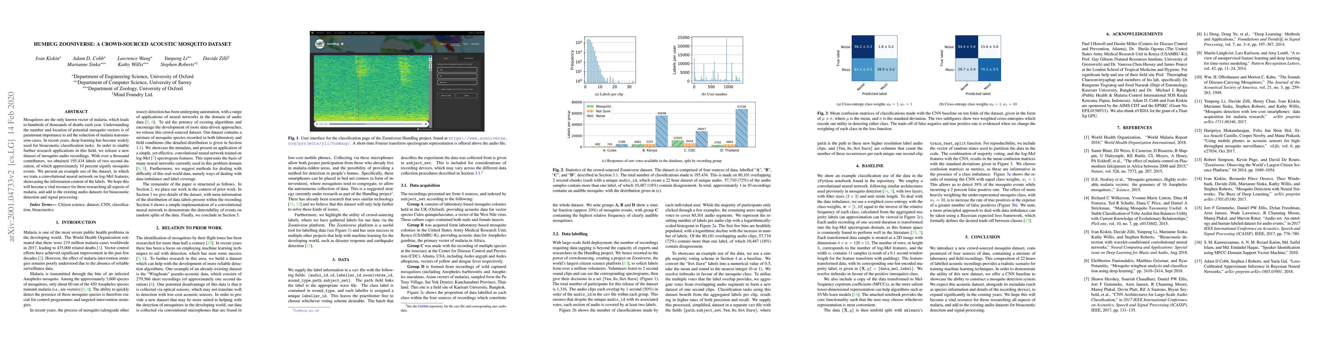 Mosquitoes are the only known vector of malaria, which leads to hundreds of thousands of deaths each year. Understanding the number and location of potential mosquito vectors is of paramount importance to aid the reduction of malaria transmission cases. In recent years, deep learning has become widely used for bioacoustic classification tasks. In order to enable further research applications in this field, we release a new dataset of mosquito audio recordings. With over a thousand contributors, we obtained 195,434 labels of two second duration, of which approximately 10 percent signify mosquito events. We present an example use of the dataset, in which we train a convolutional neural network on log-Mel features, showcasing the information content of the labels. We hope this will become a vital resource for those researching all aspects of malaria, and add to the existing audio datasets for bioacoustic detection and signal processing.