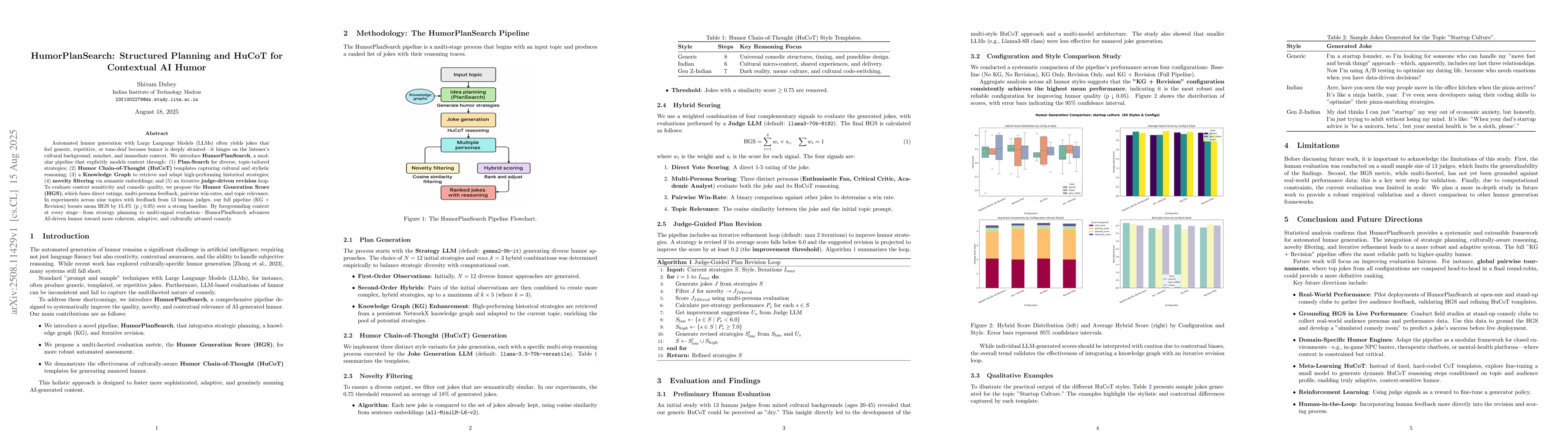 Automated humor generation with Large Language Models (LLMs) often yields jokes that feel generic, repetitive, or tone-deaf because humor is deeply situated and hinges on the listener's cultural background, mindset, and immediate context. We introduce HumorPlanSearch, a modular pipeline that explicitly models context through: (1) Plan-Search for diverse, topic-tailored strategies; (2) Humor Chain-of-Thought (HuCoT) templates capturing cultural and stylistic reasoning; (3) a Knowledge Graph to retrieve and adapt high-performing historical strategies; (4) novelty filtering via semantic embeddings; and (5) an iterative judge-driven revision loop. To evaluate context sensitivity and comedic quality, we propose the Humor Generation Score (HGS), which fuses direct ratings, multi-persona feedback, pairwise win-rates, and topic relevance. In experiments across nine topics with feedback from 13 human judges, our full pipeline (KG + Revision) boosts mean HGS by 15.4 percent (p < 0.05) over a strong baseline. By foregrounding context at every stage from strategy planning to multi-signal evaluation, HumorPlanSearch advances AI-driven humor toward more coherent, adaptive, and culturally attuned comedy.