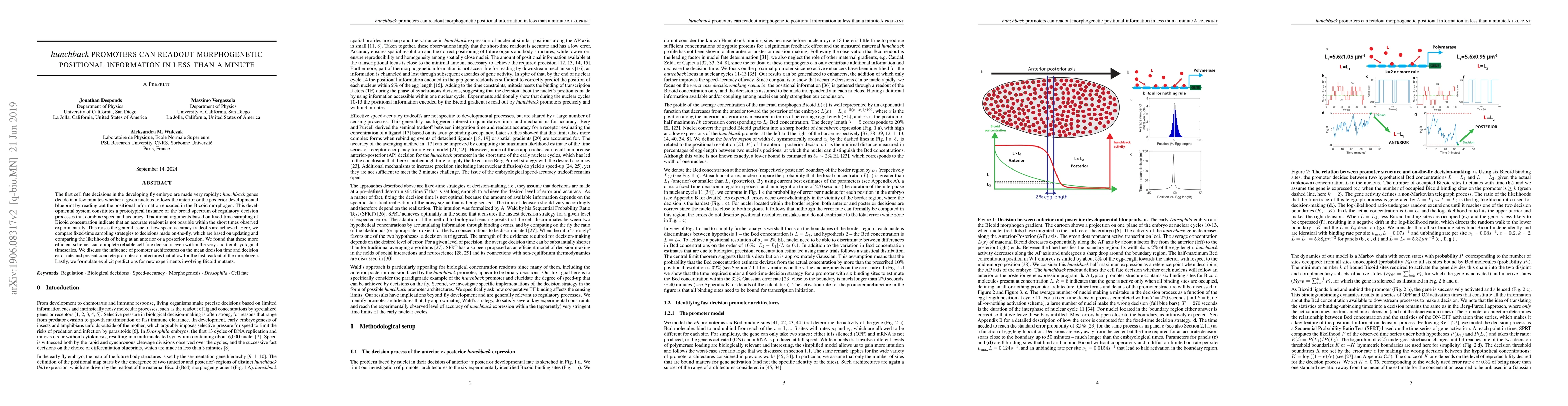The first cell fate decisions in the developing fly embryo are made very rapidly : hunchback genes decide in a few minutes whether a given nucleus follows the anterior or the posterior developmental blueprint by reading out the positional information encoded in the Bicoid morphogen. This developmental system constitutes a prototypical instance of the broad spectrum of regulatory decision processes that combine speed and accuracy. Traditional arguments based on fixed-time sampling of Bicoid concentration indicate that an accurate readout is not possible within the short times observed experimentally. This raises the general issue of how speed-accuracy tradeoffs are achieved. Here, we compare fixed-time sampling strategies to decisions made on-the-fly, which are based on updating and comparing the likelihoods of being at an anterior or a posterior location. We found that these more efficient schemes can complete reliable cell fate decisions even within the very short embryological timescales. We discuss the influence of promoter architectures on the mean decision time and decision error rate and present concrete promoter architectures that allow for the fast readout of the morphogen. Lastly, we formulate explicit predictions for new experiments involving Bicoid mutants.