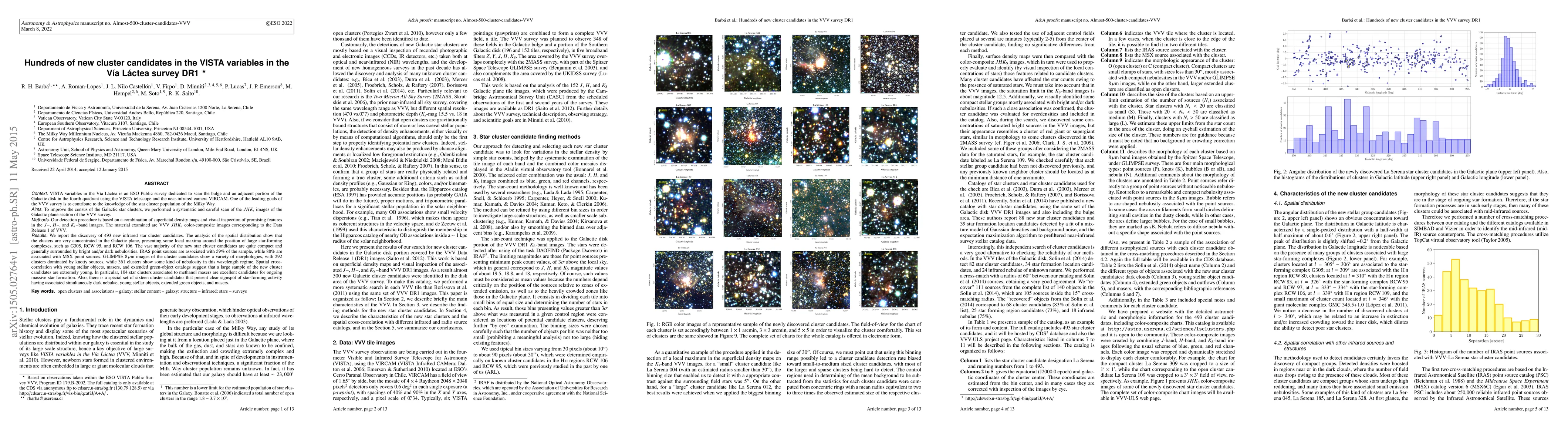The VISTA variables in the Via Lactea survey DR1 has identified 493 new star cluster candidates in the Milky Way's bulge and disk, predominantly concentrated in the Galactic plane. These clusters are often associated with young stellar objects, masers, and nebulosities, indicating active star formation, with 104 clusters linked to methanol masers suggesting massive star formation.