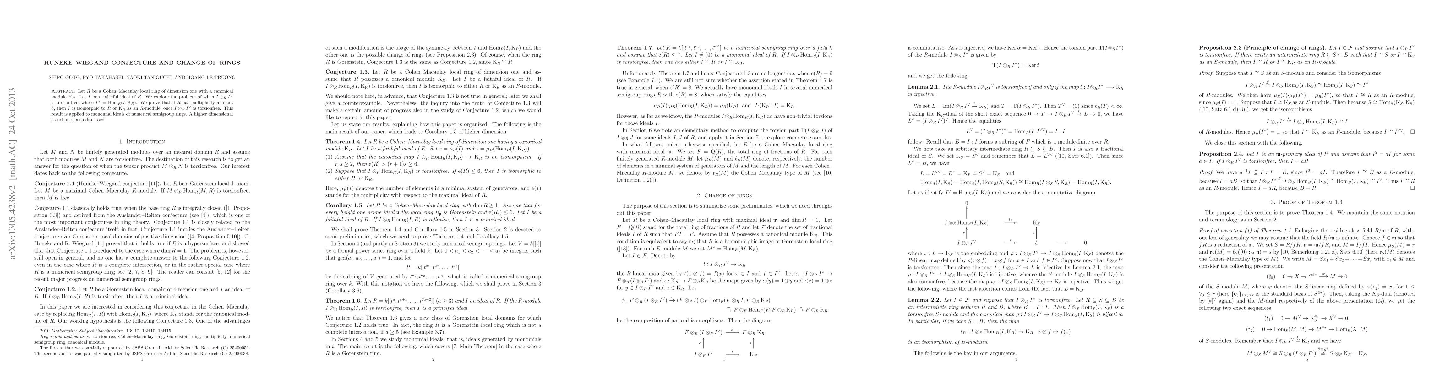 Let $R$ be a Cohen-Macaulay local ring of dimension one with a canonical module $\rm{K_R}$. Let $I$ be a faithful ideal of $R$. We explore the problem of when $I \otimes_RI^{\vee}$ is torsionfree, where $I^{\vee} = \operatorname{Hom_R(I, \rm{K_R})}$. We prove that if $R$ has multiplicity at most $6$, then $I$ is isomorphic to $R$ or $\rm{K_R}$ as an $R$-module, once $I\otimes_RI^{\vee}$ is torsionfree. This result is applied to monomial ideals of numerical semigroup rings. A higher dimensional assertion is also discussed.