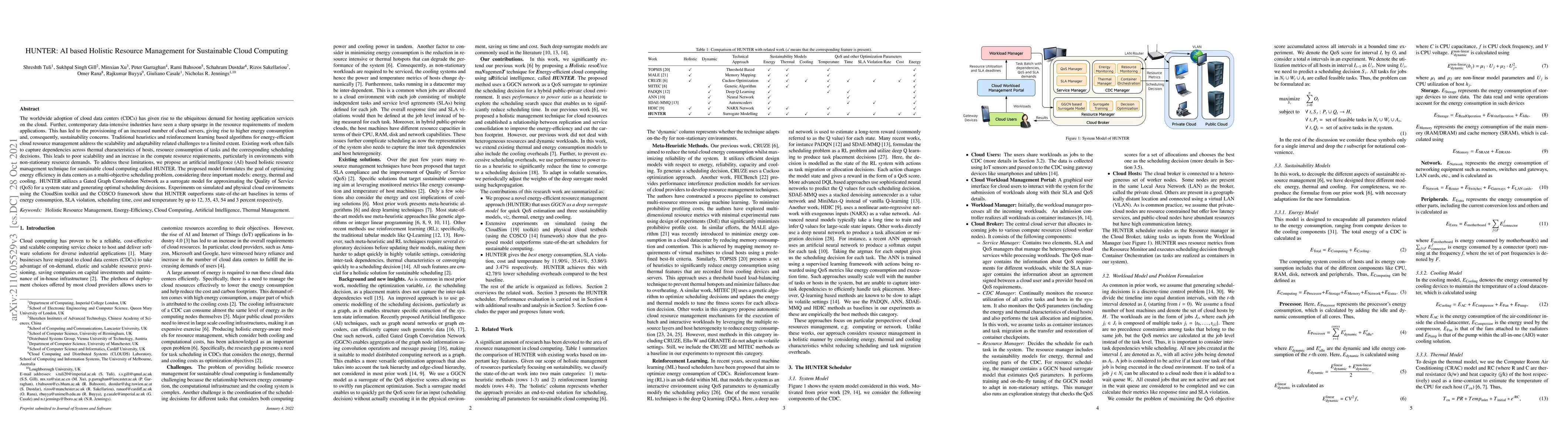 HUNTER is an AI-based holistic resource management technique designed to optimize energy efficiency in cloud computing by addressing scalability and adaptability challenges. It outperforms existing methods in energy consumption, SLA violation, scheduling time, cost, and temperature through a Gated Graph Convolution Network.
