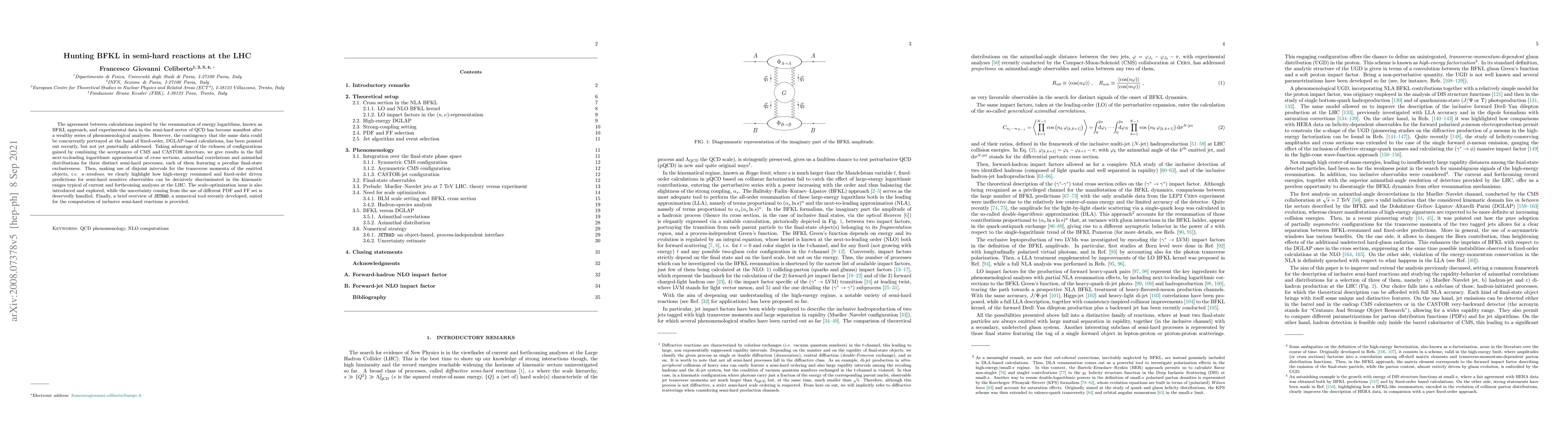 This paper explores the BFKL resummation approach versus fixed-order DGLAP calculations in semi-hard QCD processes at the LHC, demonstrating clear distinctions in predictions using CMS and CASTOR detector data. It also discusses scale optimization and uncertainties from different PDF and FF sets, and introduces JETHAD for inclusive semi-hard reactions.