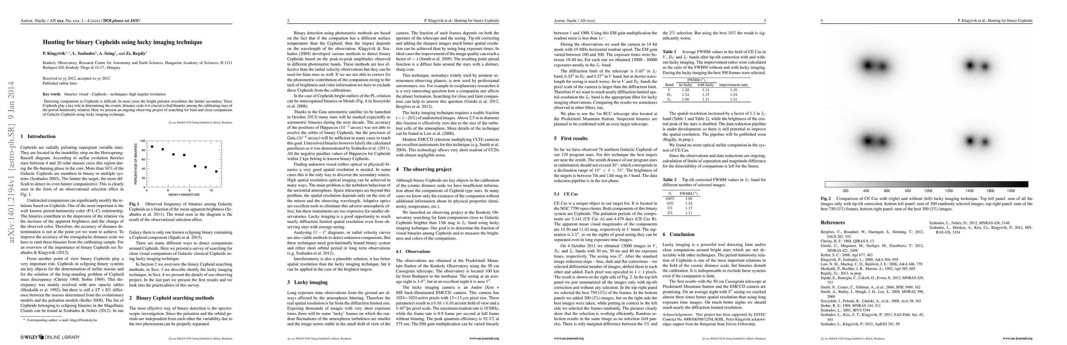 This study employs the lucky imaging technique to detect faint companions of Cepheids, which are vital for the cosmic distance scale, overcoming the challenge of the bright primary star overshadowing potential binaries. The project aims to identify close, previously undetected companions among Galactic Cepheids.