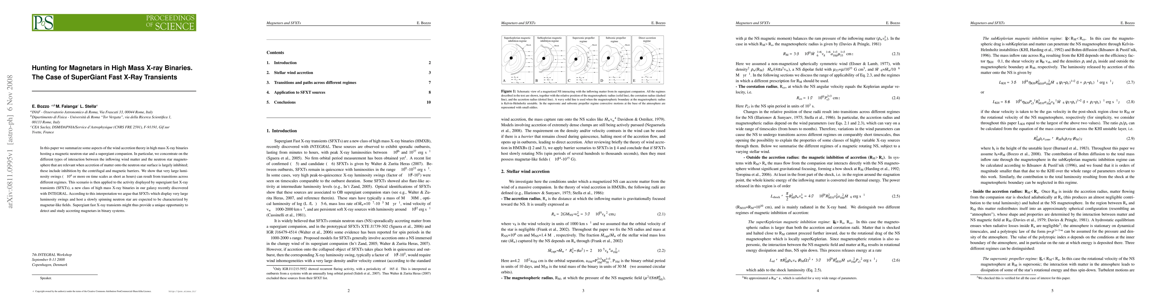 This paper explores the wind accretion theory in high mass X-ray binaries, focusing on the interaction between wind matter and the neutron star's magnetosphere, particularly in supergiant fast X-ray transients (SFXTs). It suggests that SFXTs exhibiting large luminosity swings may host magnetar-like neutron stars, providing a potential avenue for detecting accreting magnetars in binary systems.