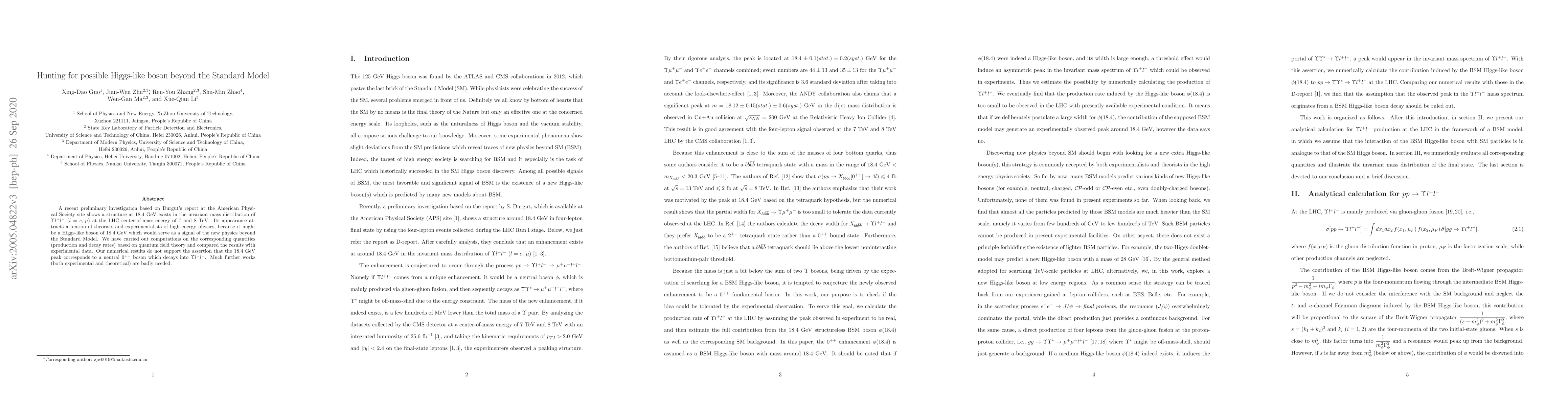 A recent preliminary investigation based on Durgut's report at the American Physical Society site shows a structure at $18.4~ {\rm GeV}$ exists in the invariant mass distribution of $\Upsilon l^+l^- ~ (l = e,\, \mu)$ at the LHC center-of-mass energy of $7$ and $8~ {\rm TeV}$. Its appearance attracts attention of theorists and experimentalists of high energy physics, because it might be a Higgs-like boson of $18.4~ {\rm GeV}$ which would serve as a signal of the new physics beyond the Standard Model. We have carried out computations on the corresponding quantities (production and decay rates) based on quantum field theory and compared the results with experimental data. Our numerical results do not support the assertion that the $18.4~ {\rm GeV}$ peak corresponds to a neutral $0^{++}$ boson which decays into $\Upsilon l^+l^-$. Much further works (both experimental and theoretical) are badly needed.