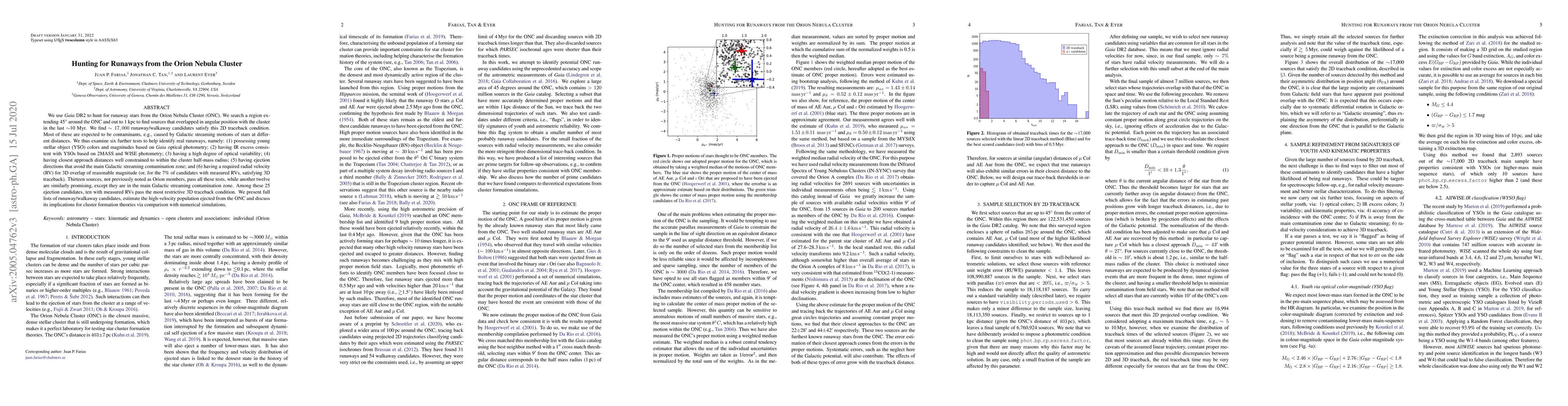 The research utilizes Gaia DR2 data to identify runaway stars from the Orion Nebula Cluster (ONC) by tracing their trajectories backward in time, applying various tests to distinguish real runaways from contaminants.