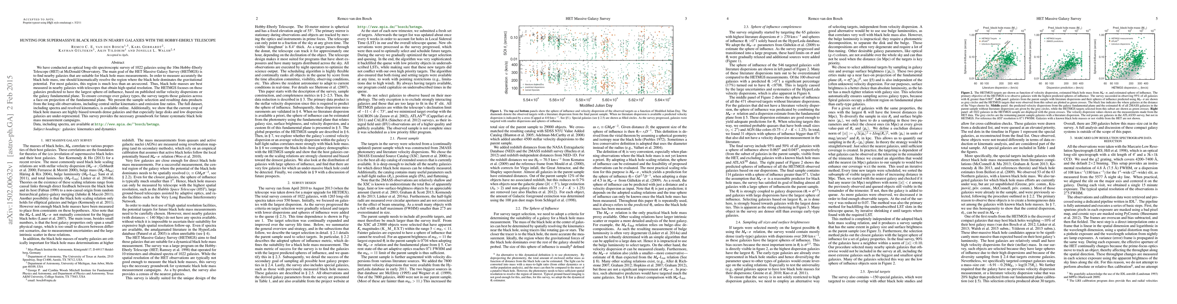 This study uses the Hobby-Eberly Telescope to survey 1022 galaxies for signs of supermassive black holes, aiming to improve future black hole mass measurements.