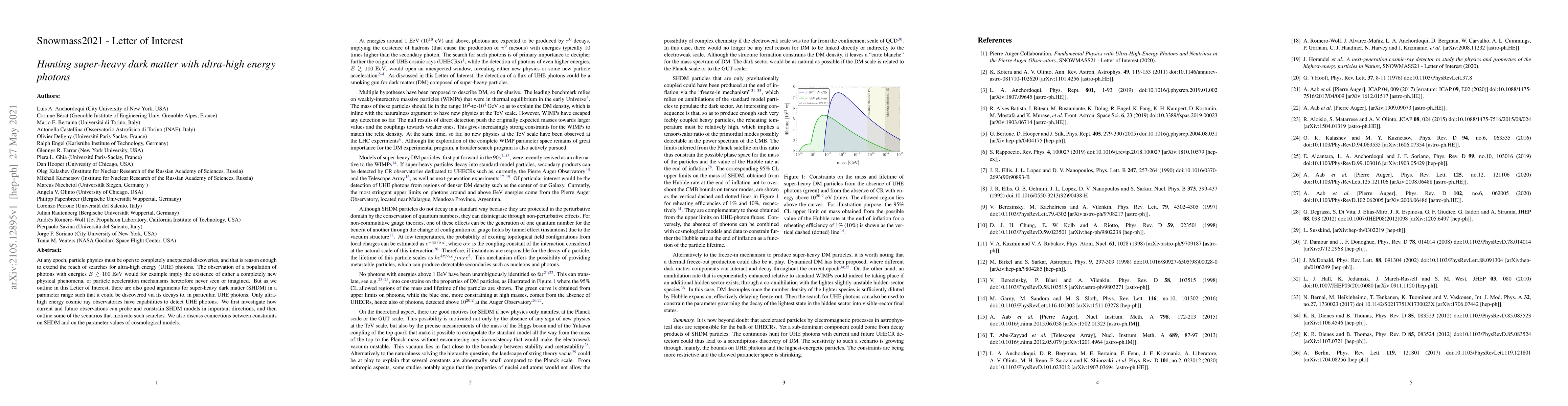 At any epoch, particle physics must be open to completely unexpected discoveries, and that is reason enough to extend the reach of searches for ultra-high energy (UHE) photons. The observation of a population of photons with energies $E \gtrsim 100$ EeV would for example imply the existence of either a completely new physical phenomena, or particle acceleration mechanisms heretofore never seen or imagined. But as we outline in this Letter of Interest, there are also good arguments for super-heavy dark matter (SHDM) in a parameter range such that it could be discovered via its decays to, in particular, UHE photons. Only ultra-high energy cosmic ray observatories have capabilities to detect UHE photons. We first investigate how current and future observations can probe and constrain SHDM models in important directions, and then outline some of the scenarios that motivate such searches. We also discuss connections between constraints on SHDM and on the parameter values of cosmological models.