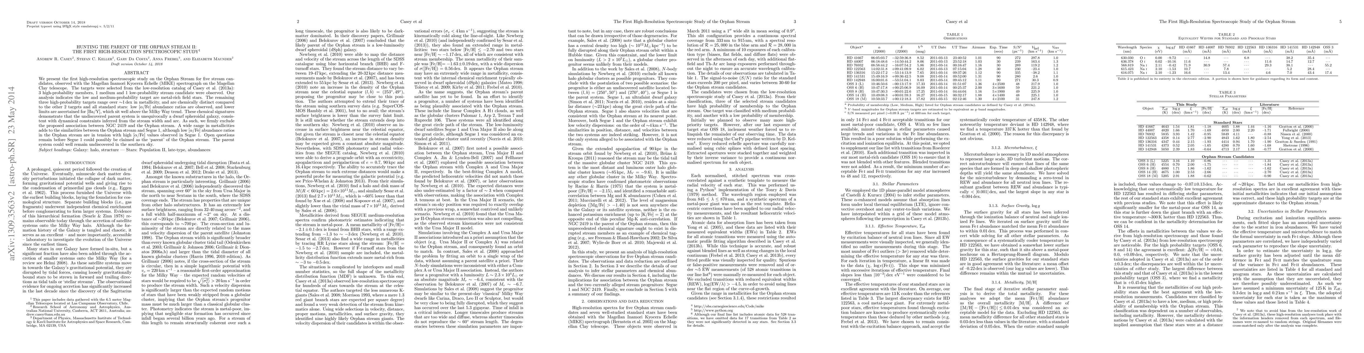 We present the first high-resolution spectroscopic study on the Orphan Stream for five stream candidates, observed with the Magellan Inamori Kyocera Echelle (MIKE) spectrograph on the Magellan Clay telescope. The targets were selected from the low-resolution catalog of Casey et al (2013a): 3 high-probability members, 1 medium and 1 low-probability stream candidate were observed. Our analysis indicates the low and medium-probability target are metal-rich field stars. The remaining three high-probability targets range over $\sim$1 dex in metallicity, and are chemically distinct compared to the other 2 targets and all standard stars: low [$\alpha$/Fe] abundance ratios are observed, and lower limits are ascertained for [Ba/Y], which sit well above the Milky Way trend. These chemical signatures demonstrate that the undiscovered parent system is unequivocally a dwarf spheroidal galaxy, consistent with dynamical constraints inferred from the stream width and arc. As such, we firmly exclude the proposed association between NGC 2419 and the Orphan stream. A wide range in metallicities adds to the similarities between the Orphan stream and Segue 1, although low [$\alpha$/Fe] abundance ratios in the Orphan stream are in tension with high [$\alpha$/Fe] values observed in Segue 1. Open questions remain before Segue 1 could possibly be claimed as the `parent' of the Orphan stream. The parent system could well remain undiscovered in the southern sky.