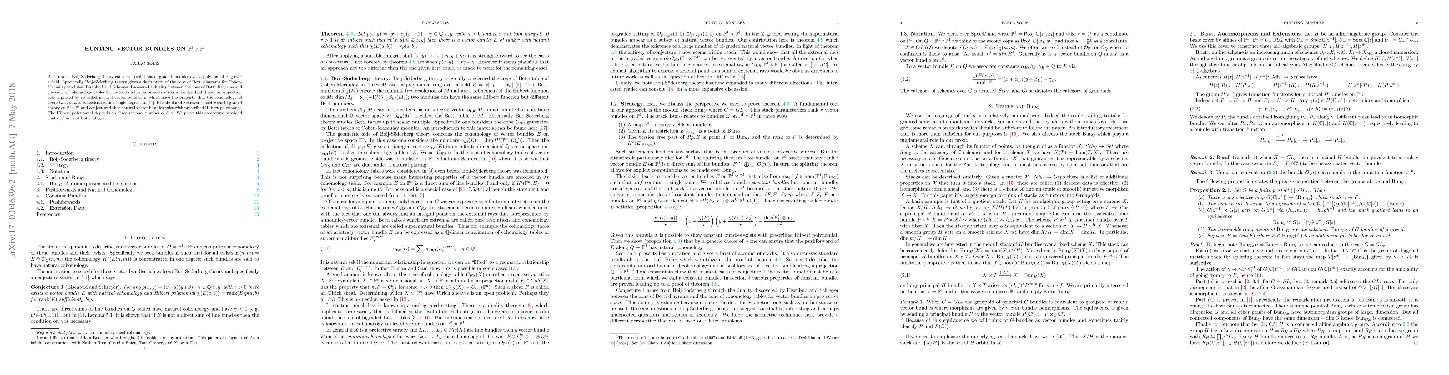 This paper proves the Eisenbud-Schreyer conjecture on the existence of natural vector bundles on $\mathbb{P}^1 \times \mathbb{P}^1$ with prescribed Euler characteristic, provided that $\alpha$ and $\beta$ are not both integral, where the Euler characteristic is determined by three rational numbers $\alpha, \beta, \gamma$. The study ties into Boij-Söderberg theory and vector bundle cohomology.