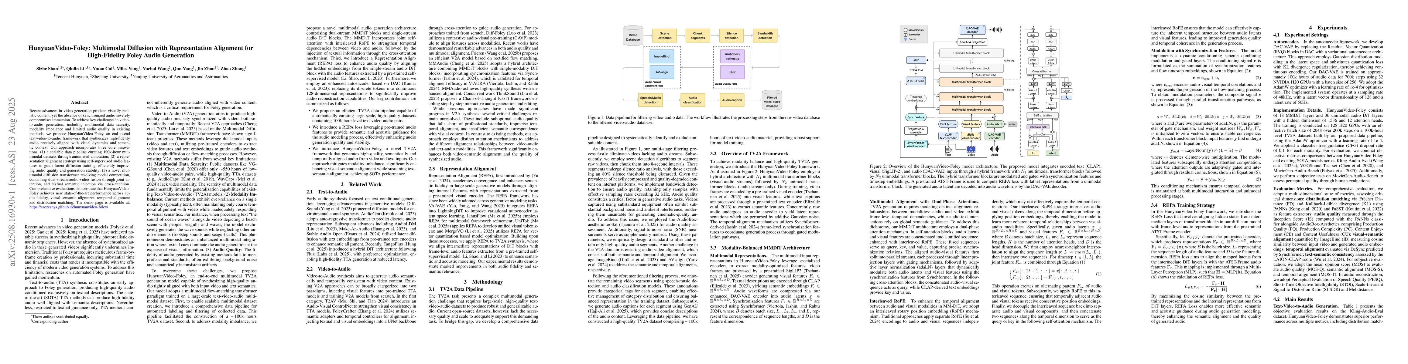 Recent advances in video generation produce visually realistic content, yet the absence of synchronized audio severely compromises immersion. To address key challenges in video-to-audio generation, including multimodal data scarcity, modality imbalance and limited audio quality in existing methods, we propose HunyuanVideo-Foley, an end-to-end text-video-to-audio framework that synthesizes high-fidelity audio precisely aligned with visual dynamics and semantic context. Our approach incorporates three core innovations: (1) a scalable data pipeline curating 100k-hour multimodal datasets through automated annotation; (2) a representation alignment strategy using self-supervised audio features to guide latent diffusion training, efficiently improving audio quality and generation stability; (3) a novel multimodal diffusion transformer resolving modal competition, containing dual-stream audio-video fusion through joint attention, and textual semantic injection via cross-attention. Comprehensive evaluations demonstrate that HunyuanVideo-Foley achieves new state-of-the-art performance across audio fidelity, visual-semantic alignment, temporal alignment and distribution matching. The demo page is available at: https://szczesnys.github.io/hunyuanvideo-foley/.
