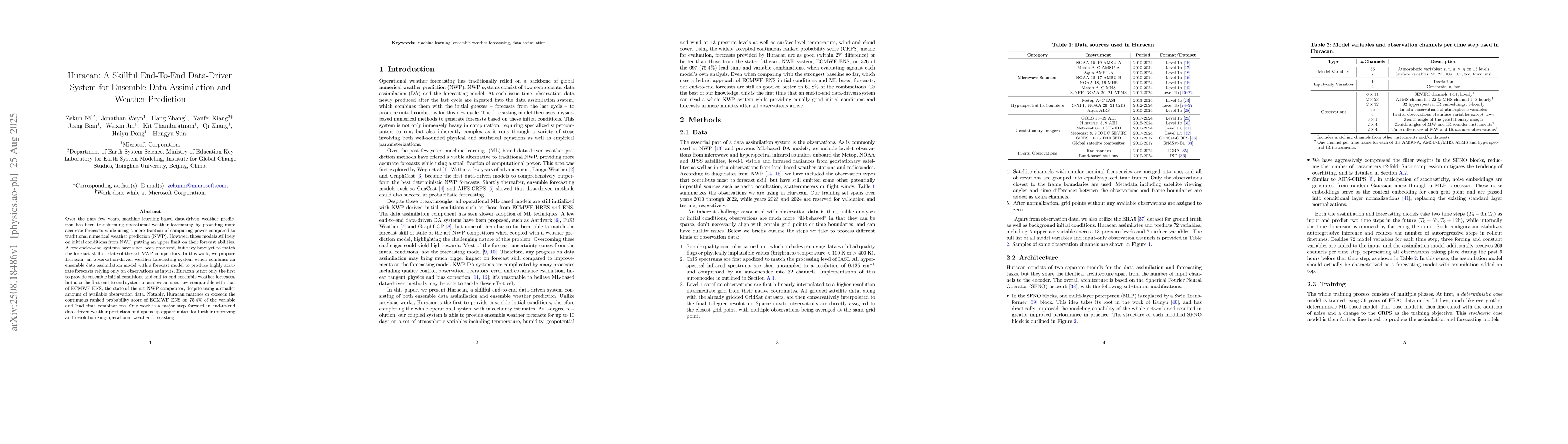 Over the past few years, machine learning-based data-driven weather prediction has been transforming operational weather forecasting by providing more accurate forecasts while using a mere fraction of computing power compared to traditional numerical weather prediction (NWP). However, those models still rely on initial conditions from NWP, putting an upper limit on their forecast abilities. A few end-to-end systems have since been proposed, but they have yet to match the forecast skill of state-of-the-art NWP competitors. In this work, we propose Huracan, an observation-driven weather forecasting system which combines an ensemble data assimilation model with a forecast model to produce highly accurate forecasts relying only on observations as inputs. Huracan is not only the first to provide ensemble initial conditions and end-to-end ensemble weather forecasts, but also the first end-to-end system to achieve an accuracy comparable with that of ECMWF ENS, the state-of-the-art NWP competitor, despite using a smaller amount of available observation data. Notably, Huracan matches or exceeds the continuous ranked probability score of ECMWF ENS on 75.4% of the variable and lead time combinations. Our work is a major step forward in end-to-end data-driven weather prediction and opens up opportunities for further improving and revolutionizing operational weather forecasting.
