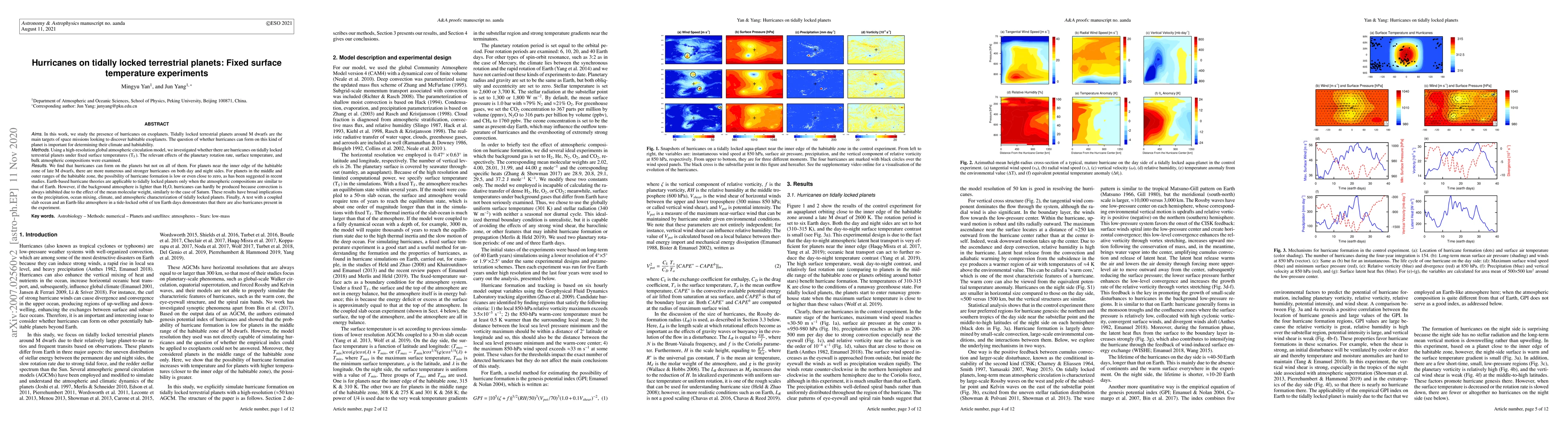 In this work, we study the presence of hurricanes on exoplanets. Tidally locked terrestrial planets around M dwarfs are the main targets of space missions looking to discover habitable exoplanets. The question of whether hurricanes can form on this kind of planet is important for determining their climate and habitability. Using a high-resolution global atmospheric circulation model, we investigated whether there are hurricanes on tidally locked terrestrial planets under fixed surface temperatures. The relevant effects of the planetary rotation rate, surface temperature, and bulk atmospheric compositions were examined. We find that hurricanes can form on the planets but not on all of them. For planets near the inner edge of the habitable zone of late M dwarfs, there are more numerous and stronger hurricanes on both day and night sides. For planets in the middle and outer ranges of the habitable zone, the possibility of hurricane formation is low or even close to zero, as has been suggested in recent studies. Earth-based hurricane theories are applicable to tidally locked planets only when the atmospheric compositions are similar to that of Earth. However, if the background atmosphere is lighter than H2O, hurricanes can hardly be produced because convection is always inhibited due to the effect of the mean molecular weight, similarly to the case of Saturn. These results have broad implications on the precipitation, ocean mixing, climate, and atmospheric characterization of tidally locked planets. Finally, A test with a coupled slab ocean and an Earth-like atmosphere in a tide-locked orbit of ten Earth days demonstrates that there are also hurricanes present in the experiment.