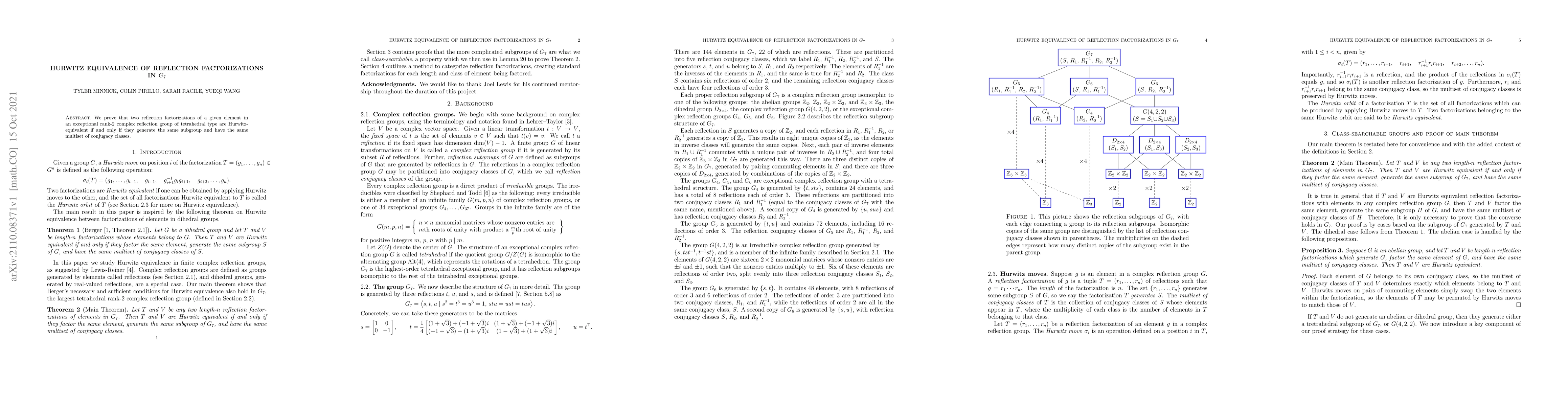 This paper demonstrates that in an exceptional rank-2 complex reflection group of tetrahedral type, two reflection factorizations of a given element are Hurwitz-equivalent if and only if they produce the same subgroup and share the same multiset of conjugacy classes.