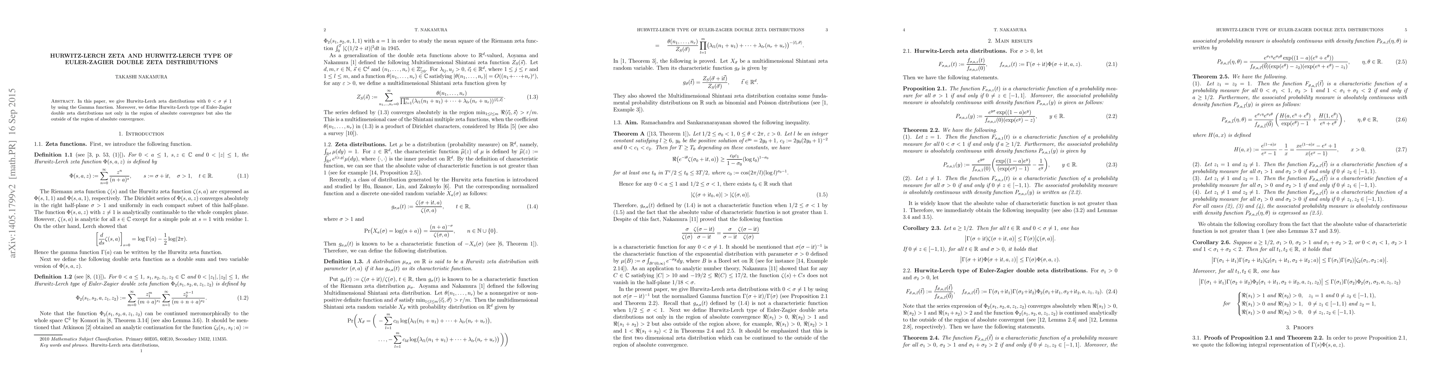 In this paper, we give Hurwitz-Lerch zeta distributions with $0 < \sigma \ne 1$ by using the Gamma function. Moreover, we define Hurwitz-Lerch type of Euler-Zagier double zeta distributions not only in the region of absolute convergence but also the outside of the region of absolute convergence.