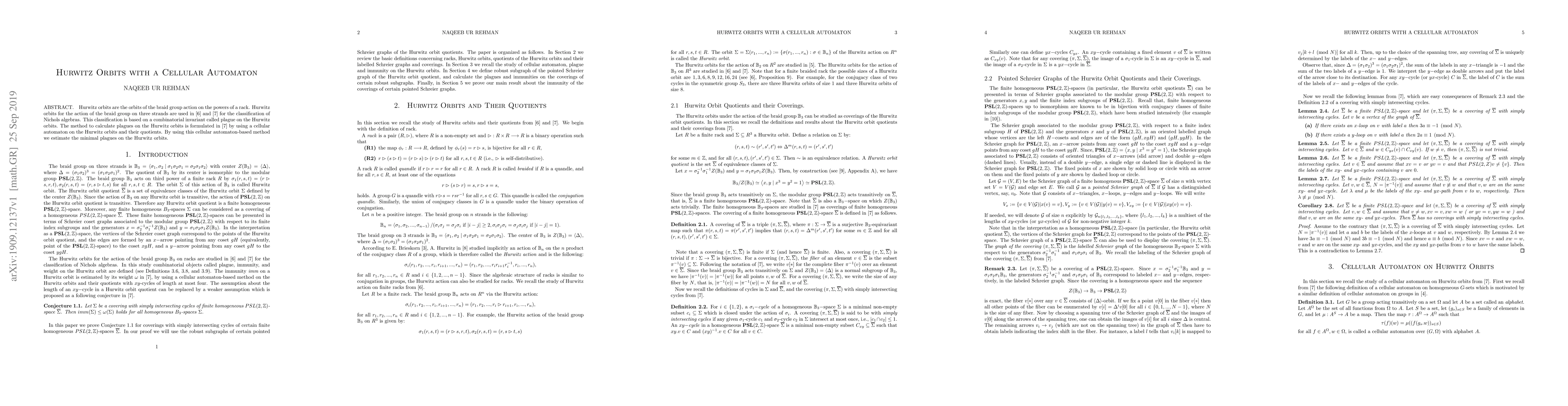 Researchers used a cellular automaton to calculate the minimal plagues on Hurwitz orbits, which are key to classifying Nichols algebras, and estimated these plagues for the first time.