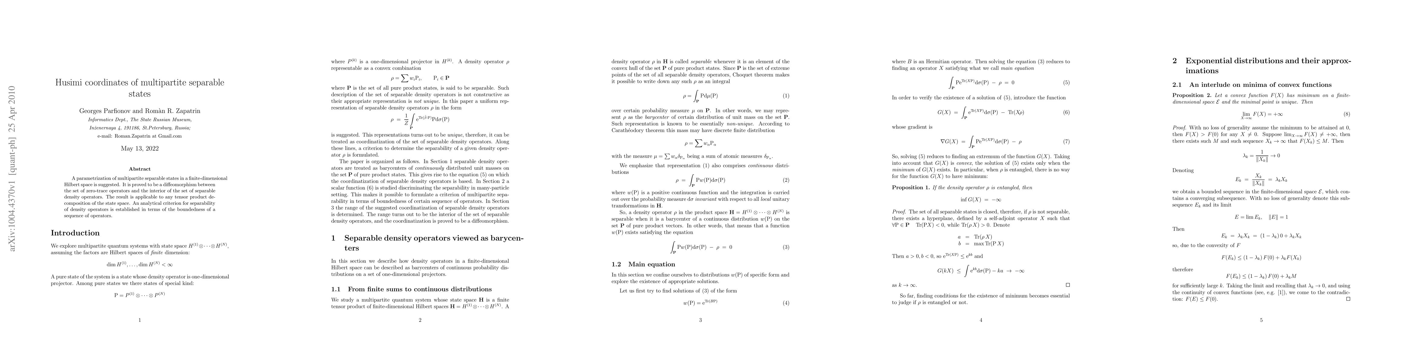 This paper proposes a parametrization for multipartite separable states in finite-dimensional Hilbert spaces, demonstrating a diffeomorphism between zero-trace operators and separable density operators. It also provides an analytical criterion for separability based on operator sequence boundedness.
