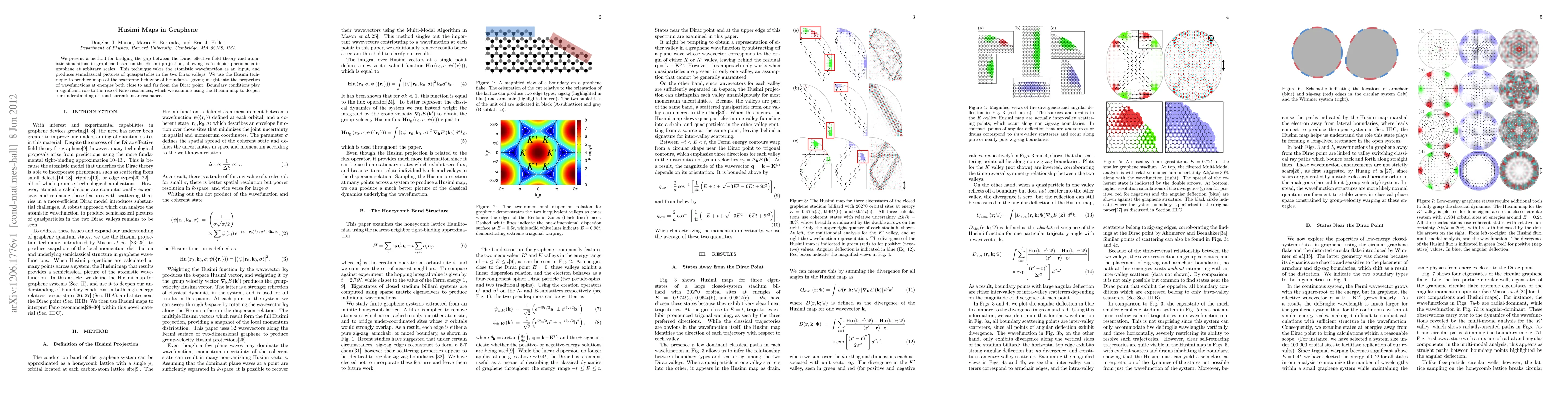 We present a method for bridging the gap between the Dirac effective field theory and atomistic simulations in graphene based on the Husimi projection, allowing us to depict phenomena in graphene at arbitrary scales. This technique takes the atomistic wavefunction as an input, and produces semiclassical pictures of quasiparticles in the two Dirac valleys. We use the Husimi tech- nique to produce maps of the scattering behavior of boundaries, giving insight into the properties of wavefunctions at energies both close to and far from the Dirac point. Boundary conditions play a significant role to the rise of Fano resonances, which we examine using the Husimi map to deepen our understanding of bond currents near resonance.