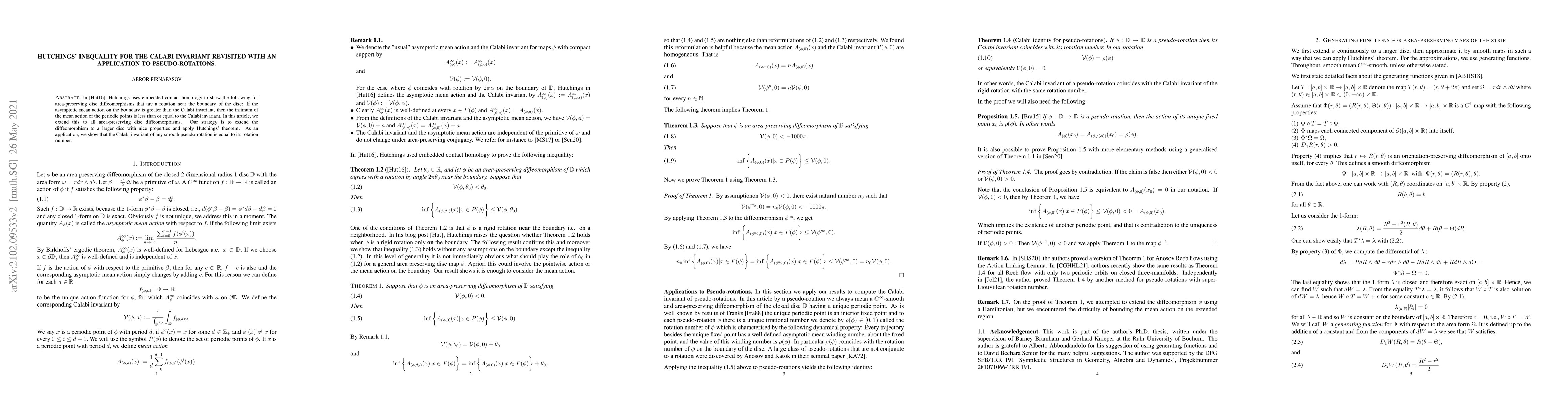 The paper extends Hutchings' inequality to all area-preserving disc diffeomorphisms, showing that the infimum of mean action of periodic points is related to the Calabi invariant, with a key application to pseudo-rotations.
