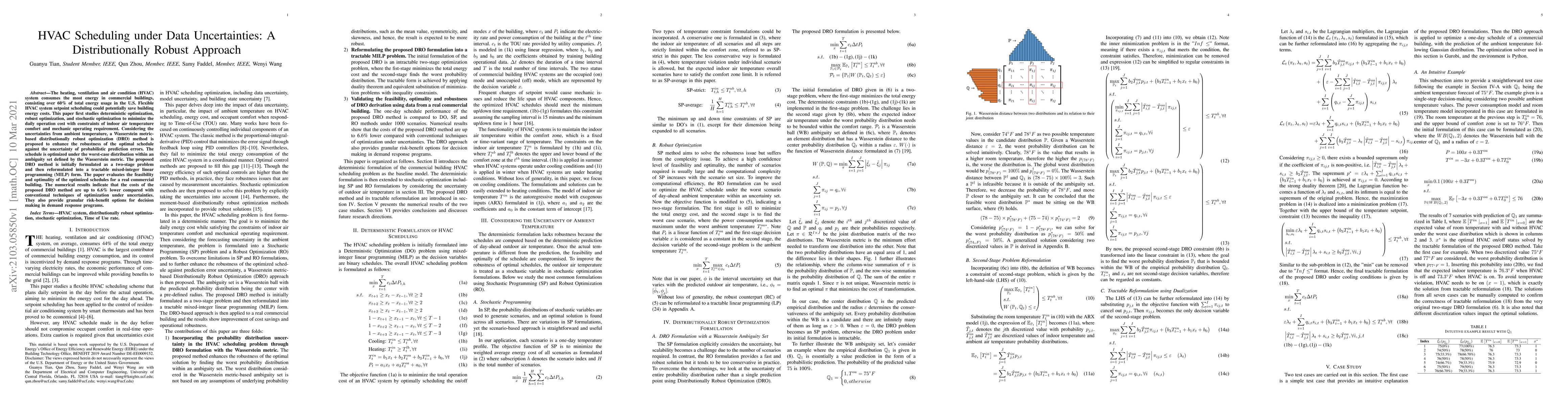 The heating, ventilation and air condition (HVAC) system consumes the most energy in commercial buildings, consisting over 60% of total energy usage in the U.S. Flexible HVAC system setpoint scheduling could potentially save building energy costs. This paper first studies deterministic optimization, robust optimization, and stochastic optimization to minimize the daily operation cost with constraints of indoor air temperature comfort and mechanic operating requirement. Considering the uncertainties from ambient temperature, a Wasserstein metric-based distributionally robust optimization (DRO) method is proposed to enhance the robustness of the optimal schedule against the uncertainty of probabilistic prediction errors. The schedule is optimized under the worst-case distribution within an ambiguity set defined by the Wasserstein metric. The proposed DRO method is initially formulated as a two-stage problem and then reformulated into a tractable mixed-integer linear programming (MILP) form. The paper evaluates the feasibility and optimality of the optimized schedules for a real commercial building. The numerical results indicate that the costs of the proposed DRO method are up to 6.6% lower compared with conventional techniques of optimization under uncertainties. They also provide granular risk-benefit options for decision making in demand response programs.
