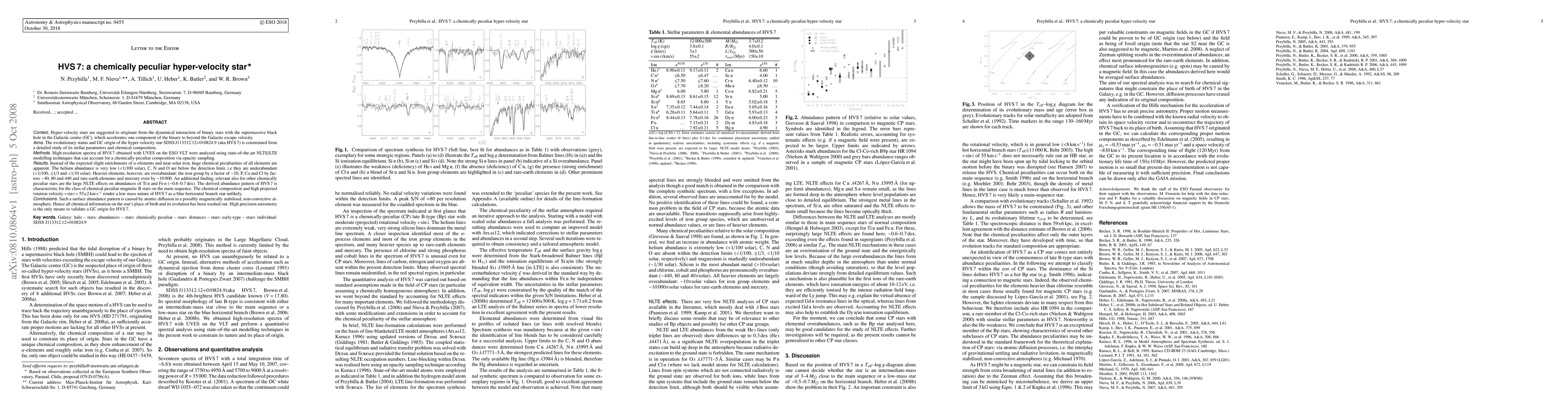 The study of hyper-velocity star HVS7 reveals extreme chemical peculiarities, with significant underabundances of He, C, N, and O, and overabundances of iron group and rare-earth elements, suggesting it likely originated from the Galactic Centre but lacks typical chemical signatures due to atomic diffusion.